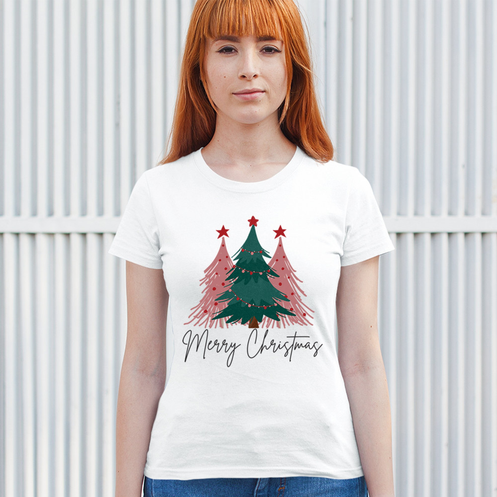 Festive pine tree design with lights, perfect for Christmas lovers, winter vibes, tree farm fans, and holiday gatherings.