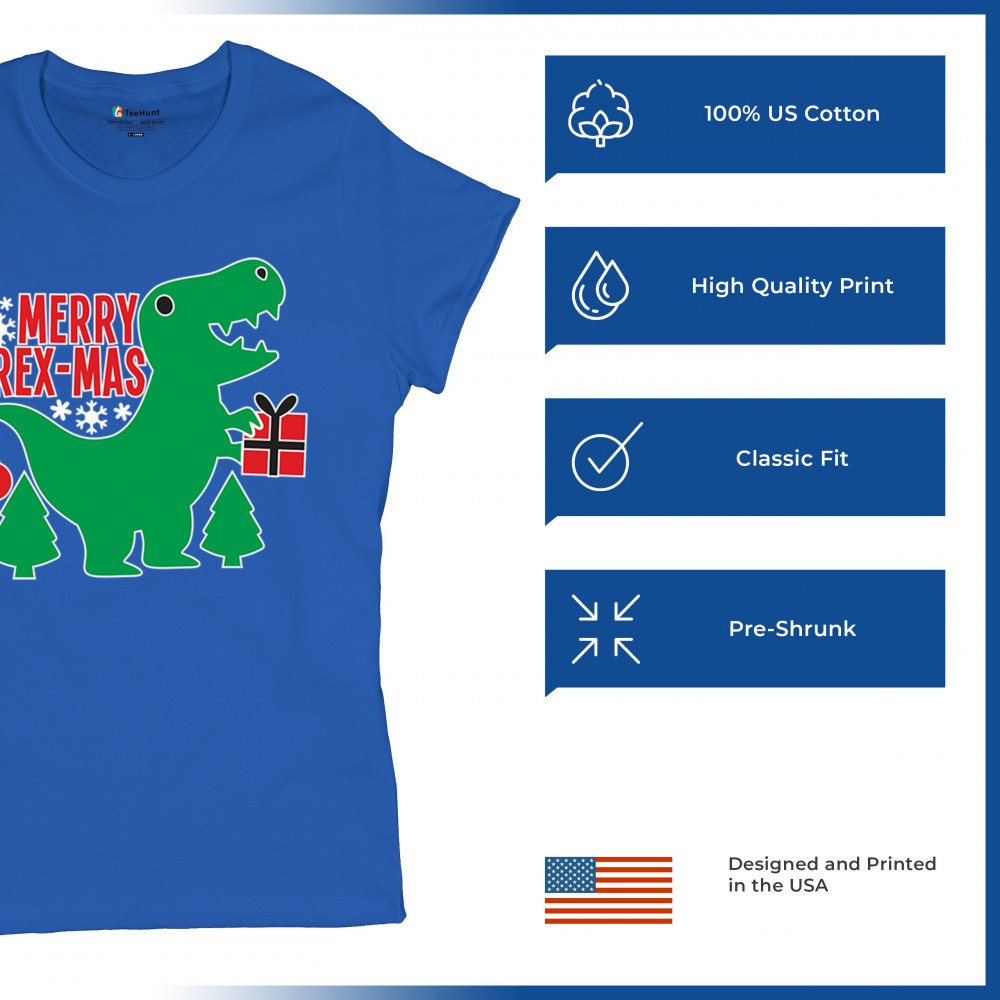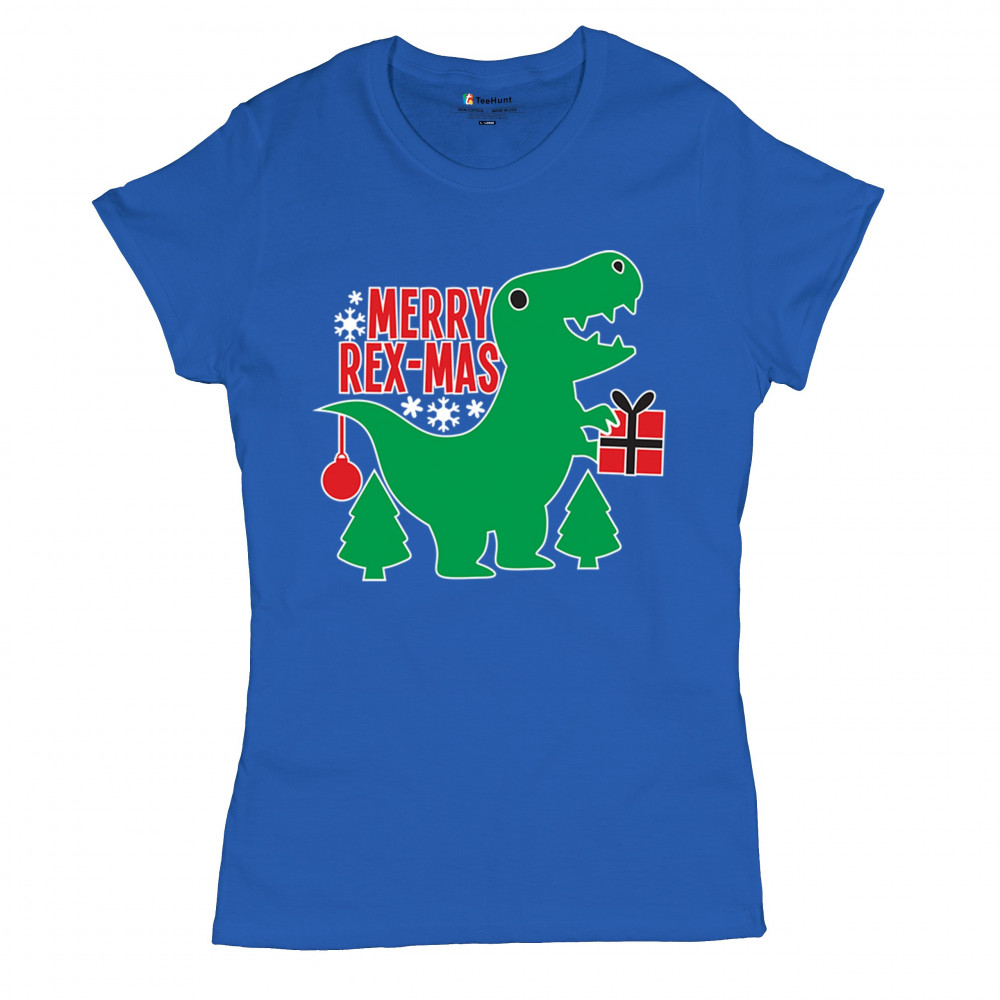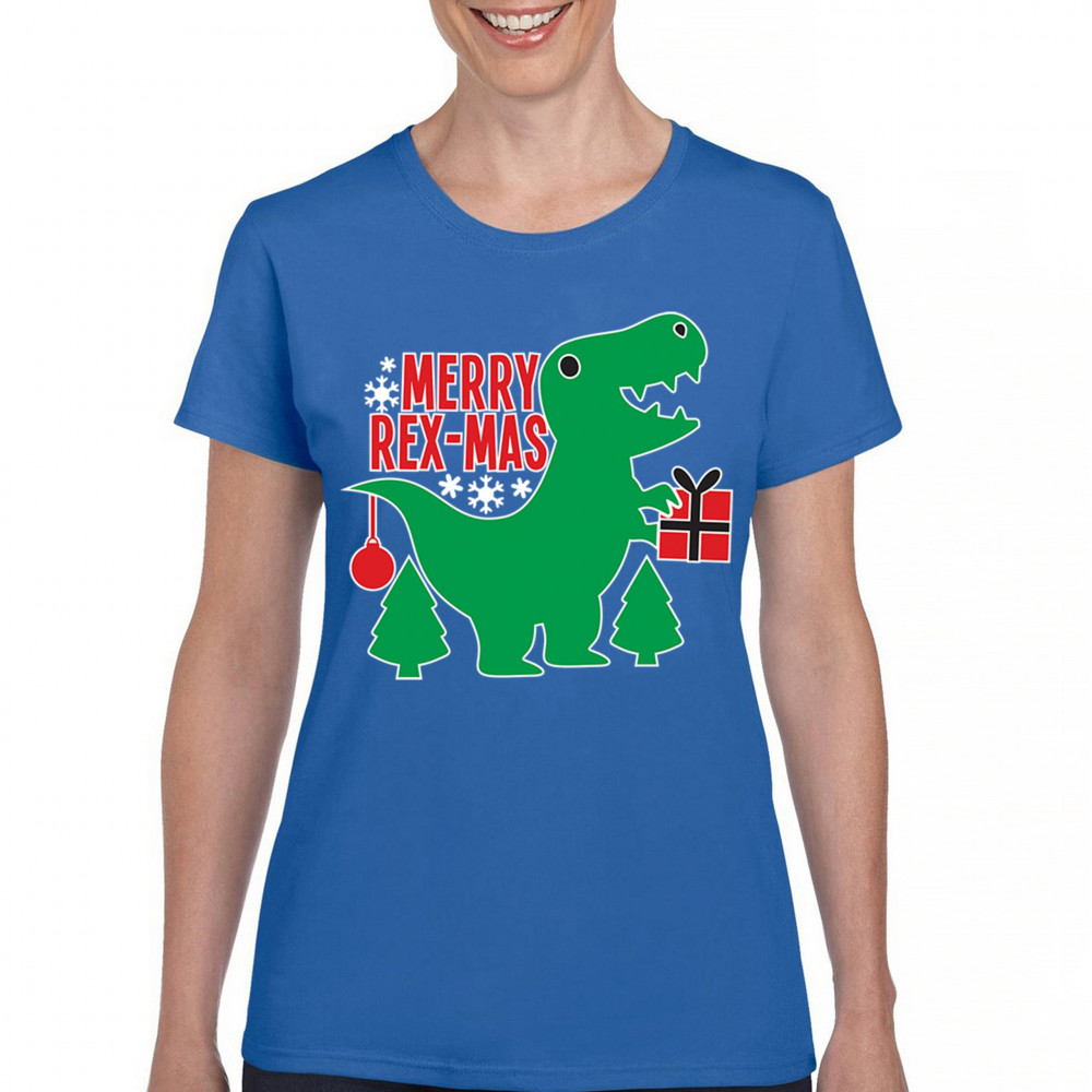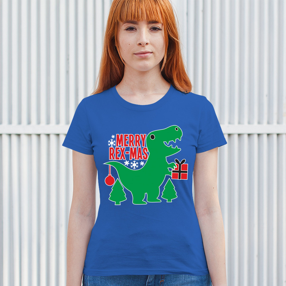 Merry Rex-Mas dinosaur Christmas design with a cute T-Rex, gift, and festive holiday details. Perfect for fun family celebrations and cheerful winter style.