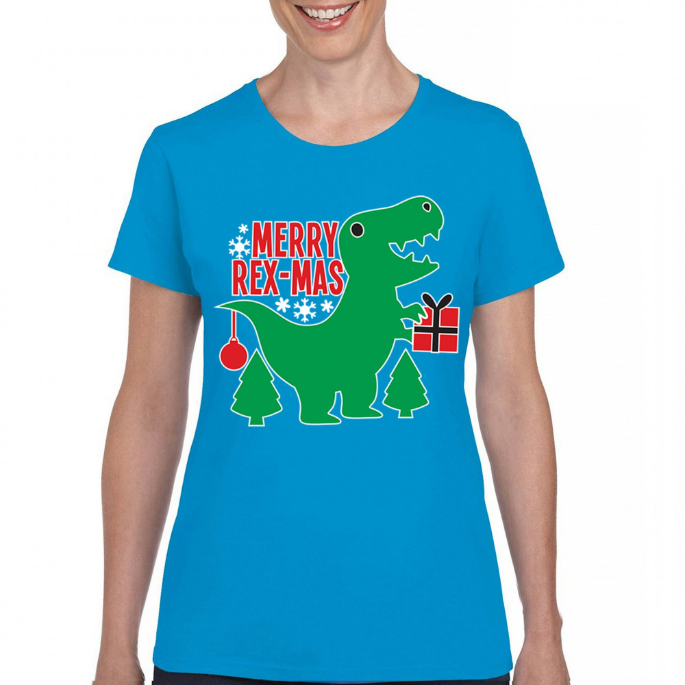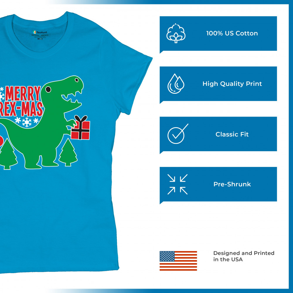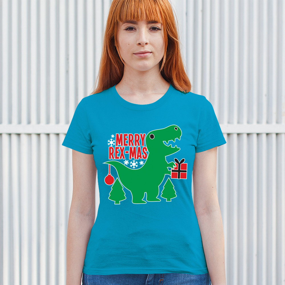 Merry Rex-Mas dinosaur Christmas design with a cute T-Rex, gift, and festive holiday details. Perfect for fun family celebrations and cheerful winter style.