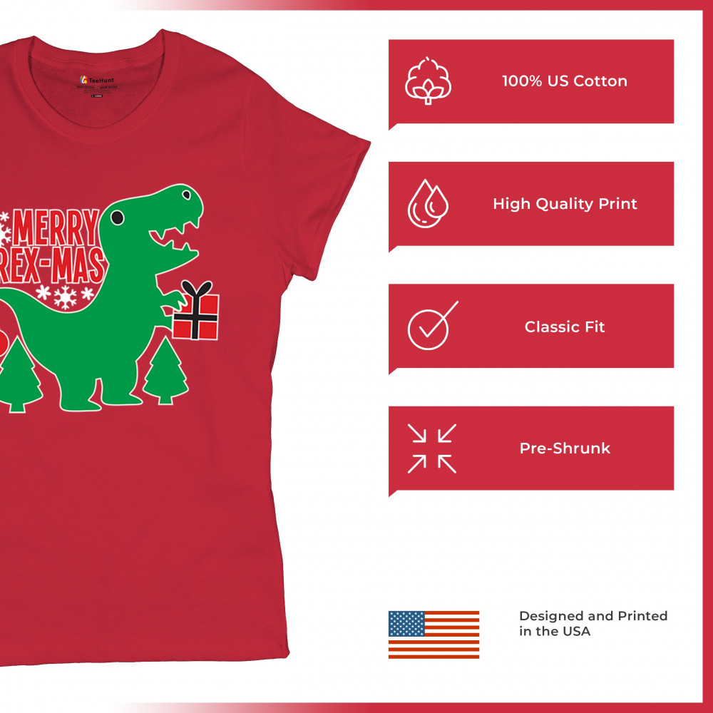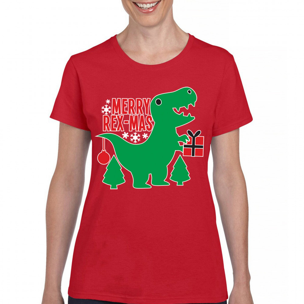 Merry Rex-Mas dinosaur Christmas design with a cute T-Rex, gift, and festive holiday details. Perfect for fun family celebrations and cheerful winter style.