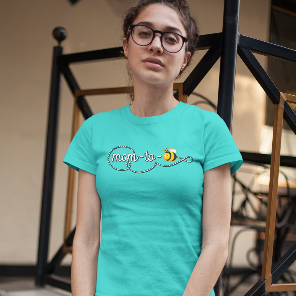 MOM TO BEE t-shirt pregnancy announcement maternity mother's day women's tee light blue