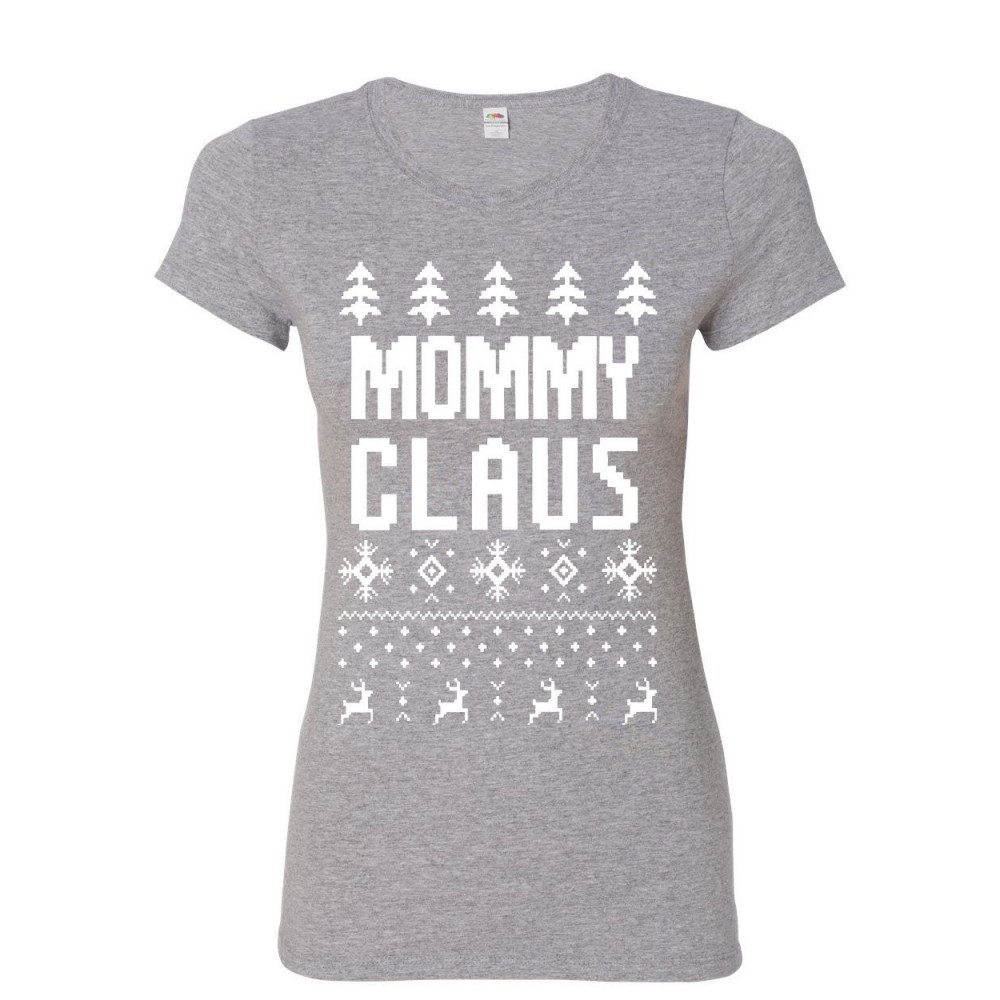 MOMMY CLAUS women's t-shirt funny ugly sweater santa christmas xmas shirt gray