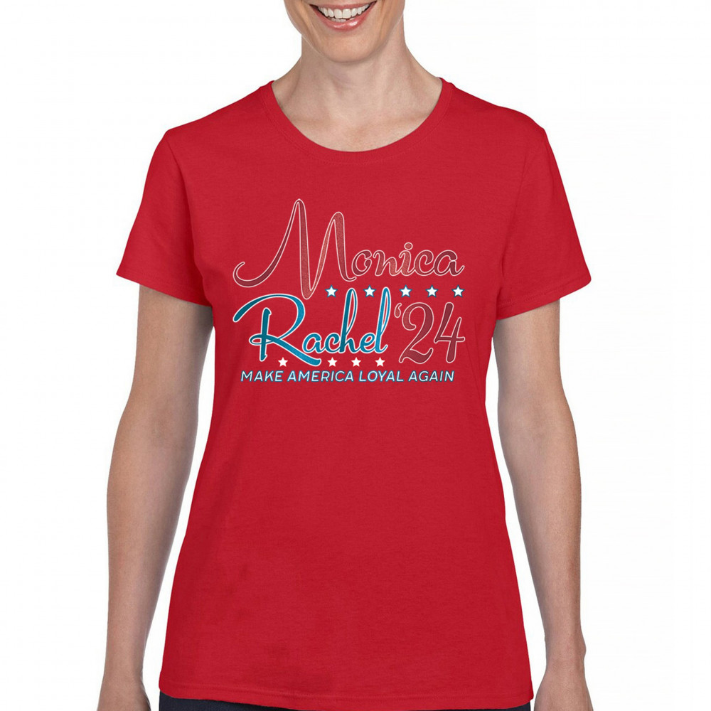 Bring together the nostalgia of "Friends" and the excitement of the upcoming election with this Monica and Rachel '24 design. This shirt is the perfect way to showcase your love for the iconic TV show while keeping the political atmosphere light and fun. Ideal for fans of Rachel and Monica, or anyone who appreciates a good joke, this shirt will have people laughing wherever you go. Wear it proudly and let your style speak volumes without saying a word!