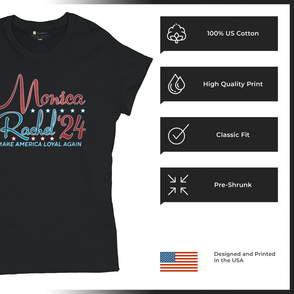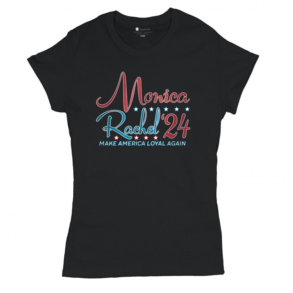 Bring together the nostalgia of "Friends" and the excitement of the upcoming election with this Monica and Rachel '24 design. This shirt is the perfect way to showcase your love for the iconic TV show while keeping the political atmosphere light and fun. Ideal for fans of Rachel and Monica, or anyone who appreciates a good joke, this shirt will have people laughing wherever you go. Wear it proudly and let your style speak volumes without saying a word!