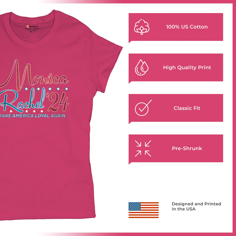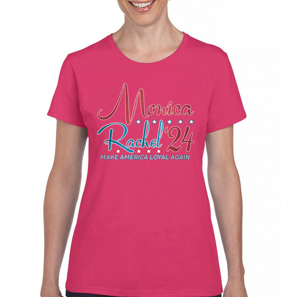 Bring together the nostalgia of "Friends" and the excitement of the upcoming election with this Monica and Rachel '24 design. This shirt is the perfect way to showcase your love for the iconic TV show while keeping the political atmosphere light and fun. Ideal for fans of Rachel and Monica, or anyone who appreciates a good joke, this shirt will have people laughing wherever you go. Wear it proudly and let your style speak volumes without saying a word!