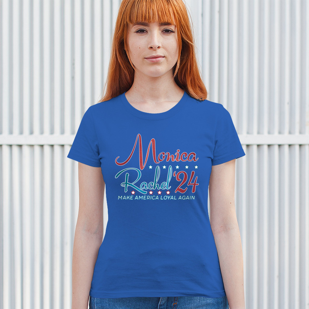 Bring together the nostalgia of "Friends" and the excitement of the upcoming election with this Monica and Rachel '24 design. This shirt is the perfect way to showcase your love for the iconic TV show while keeping the political atmosphere light and fun. Ideal for fans of Rachel and Monica, or anyone who appreciates a good joke, this shirt will have people laughing wherever you go. Wear it proudly and let your style speak volumes without saying a word!