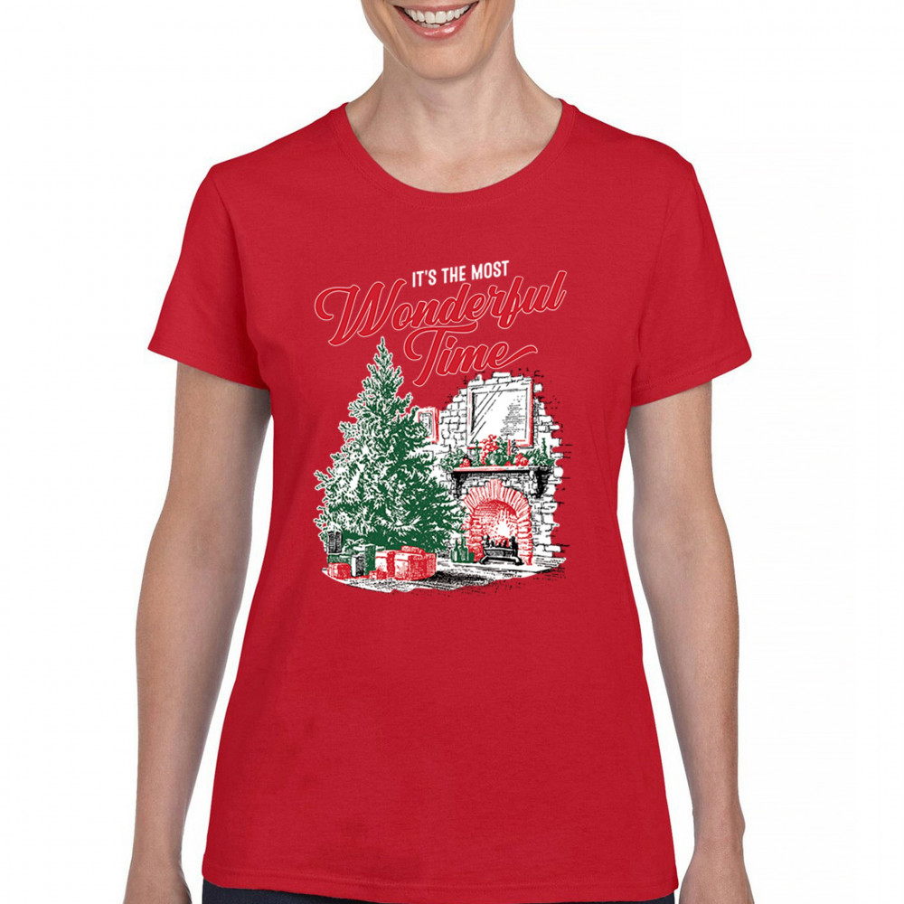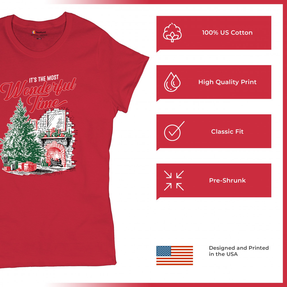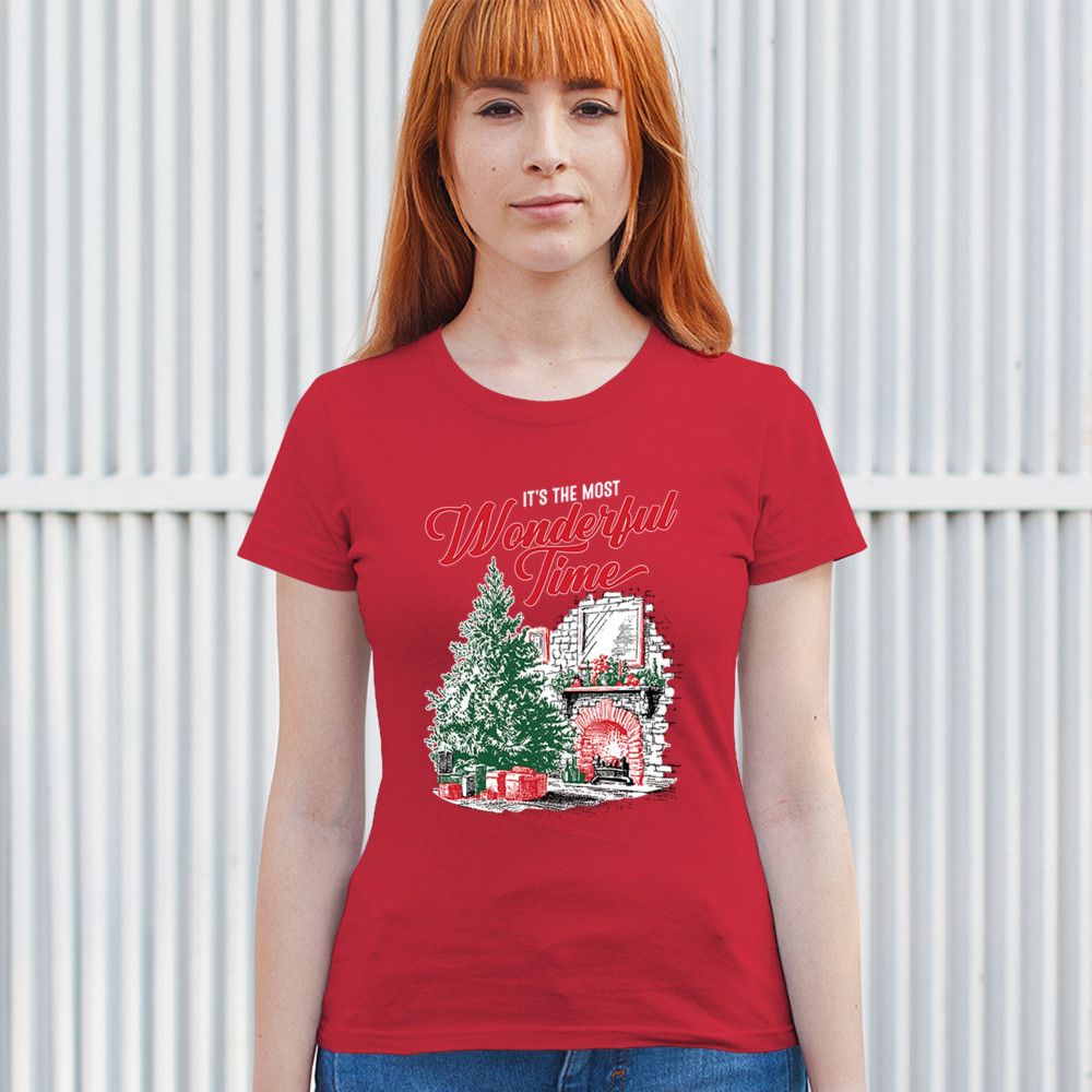 Make your holidays brighter with this “Most Wonderful Time†Christmas design, featuring a glowing fireplace, festive living room, and decorated Christmas tree. This cozy Christmas shirt combines holiday home decor style with classic Merry Xmas charm. Perfect for those who love Santa Claus, Rudolph, reindeer, Let It Snow vibes, and cheerful holiday fashion.