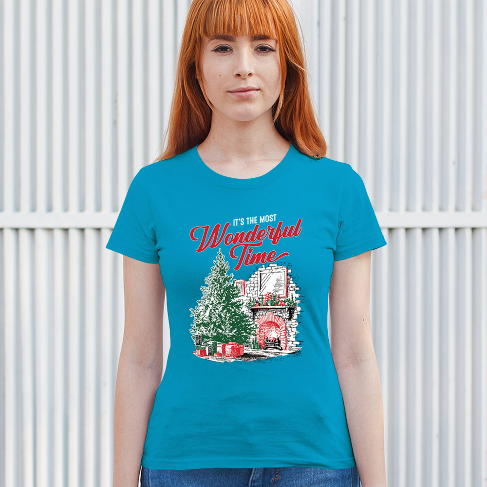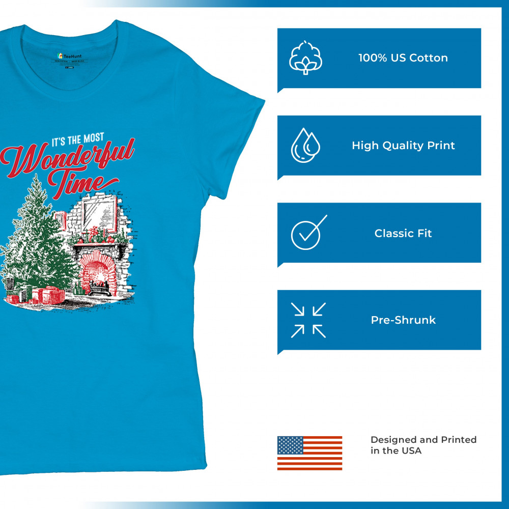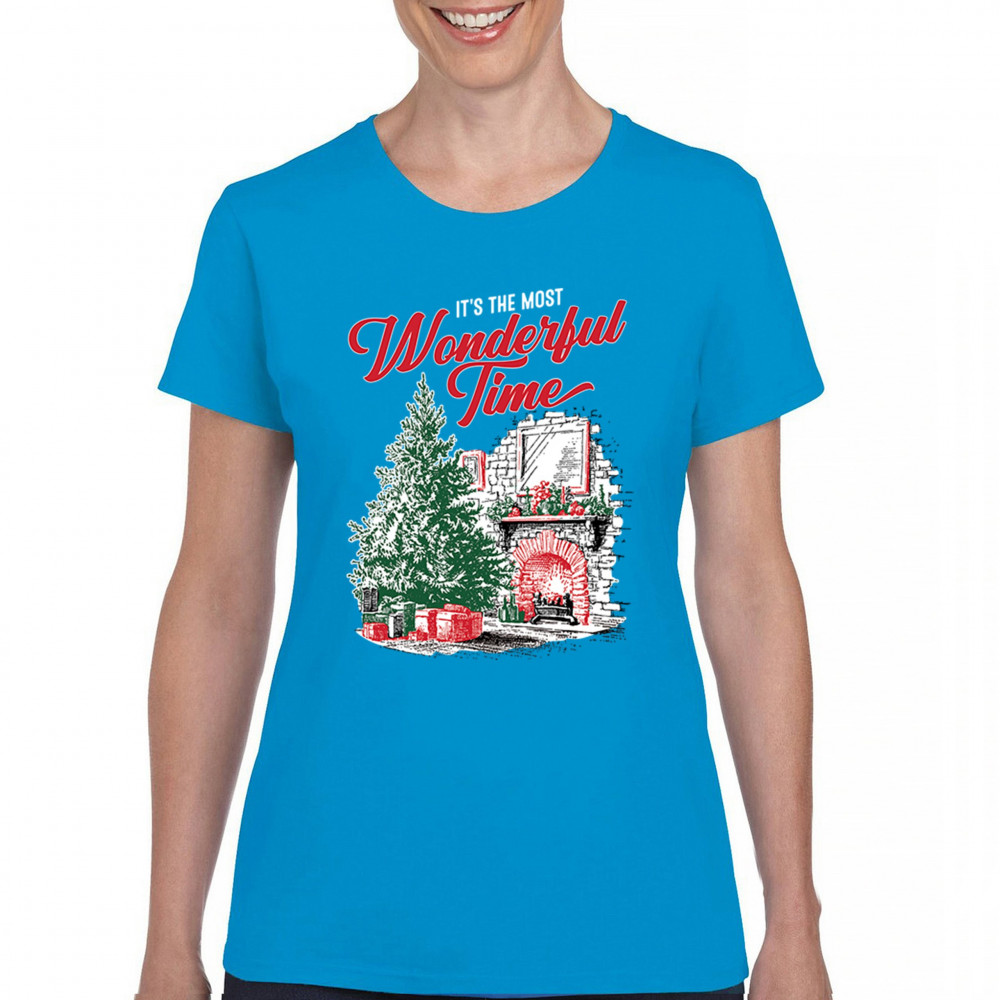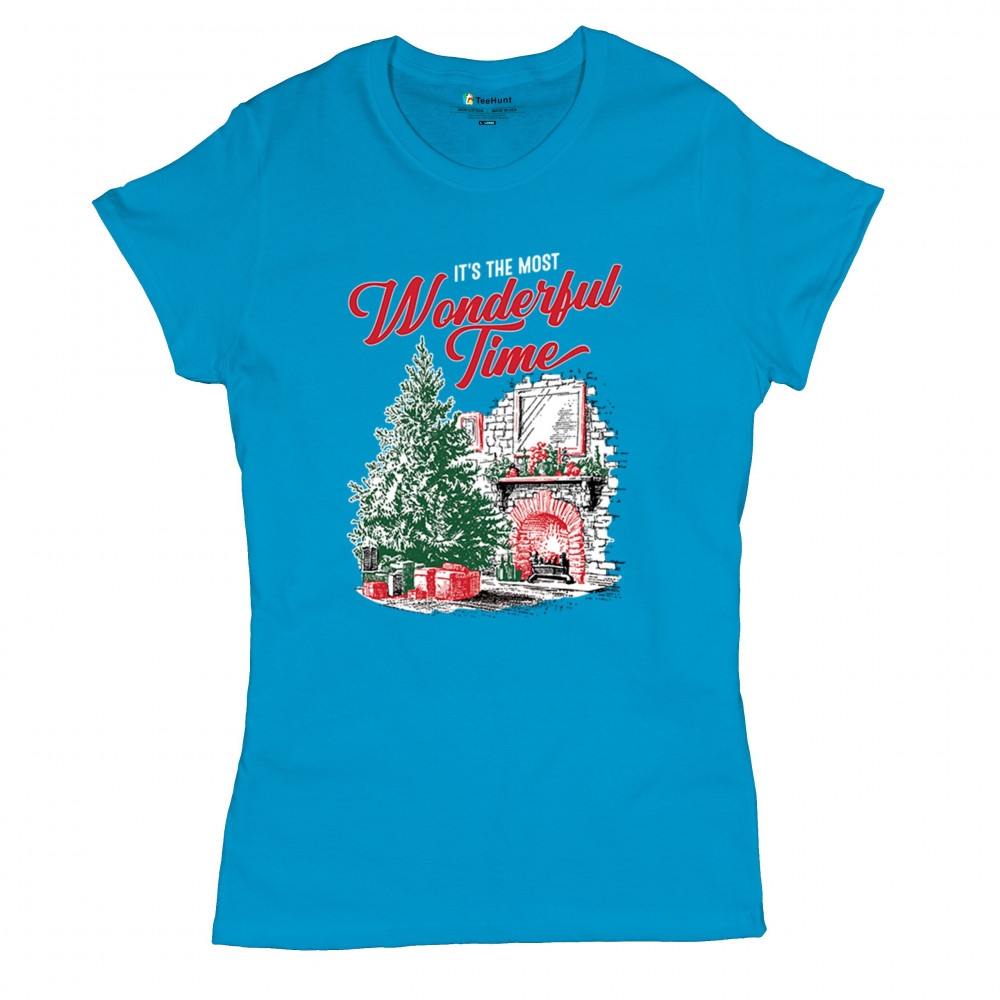 Make your holidays brighter with this “Most Wonderful Time†Christmas design, featuring a glowing fireplace, festive living room, and decorated Christmas tree. This cozy Christmas shirt combines holiday home decor style with classic Merry Xmas charm. Perfect for those who love Santa Claus, Rudolph, reindeer, Let It Snow vibes, and cheerful holiday fashion.