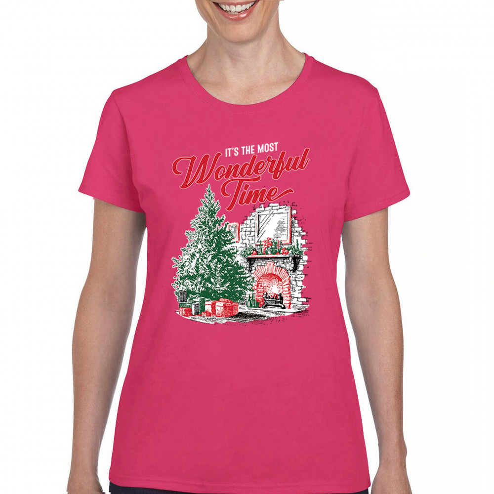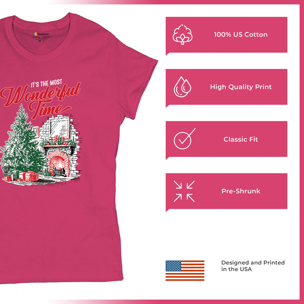 Make your holidays brighter with this “Most Wonderful Time†Christmas design, featuring a glowing fireplace, festive living room, and decorated Christmas tree. This cozy Christmas shirt combines holiday home decor style with classic Merry Xmas charm. Perfect for those who love Santa Claus, Rudolph, reindeer, Let It Snow vibes, and cheerful holiday fashion.