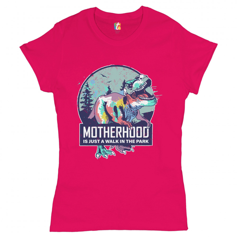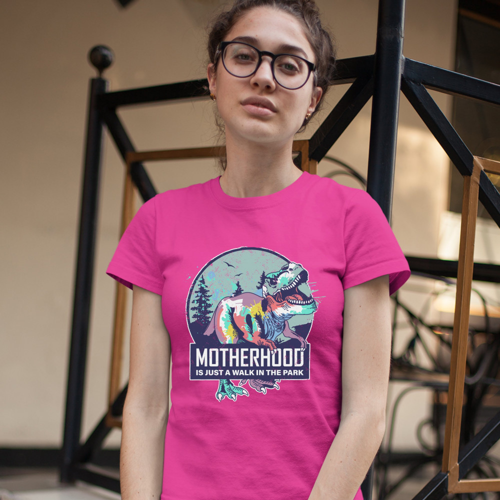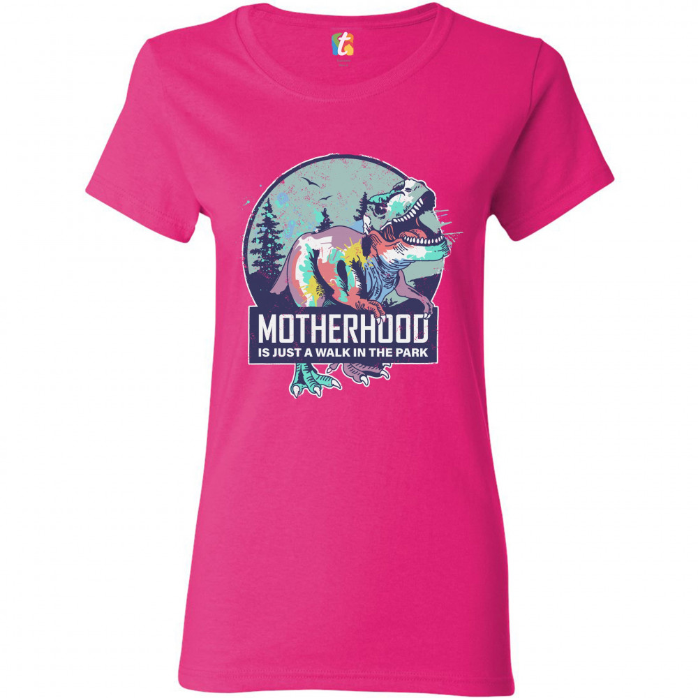 MOTHERHOOD IS JUST A WALK IN THE PARK t-shirt t-rex mother's day women's tee pink