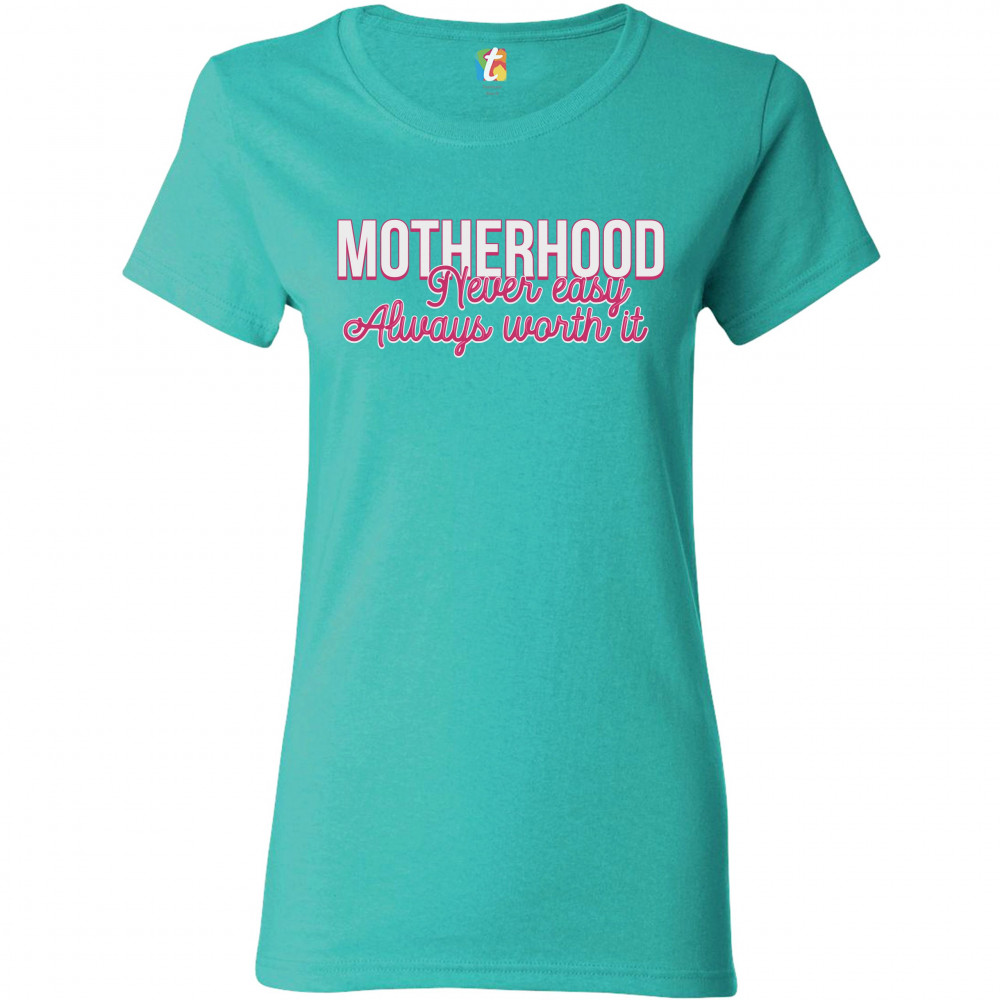 MOTHERHOOD NEVER EASY ALWAYS WORTH IT t-shirt mother's day mom women's tee light blue