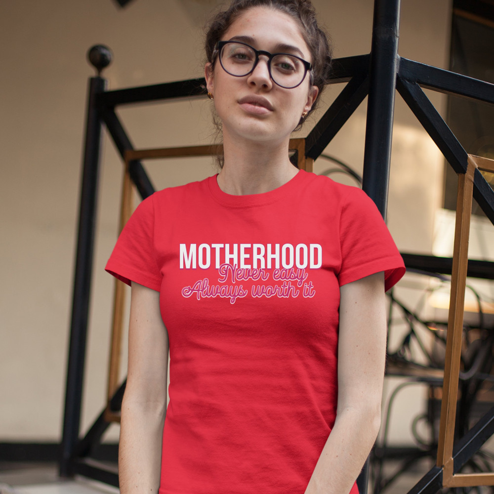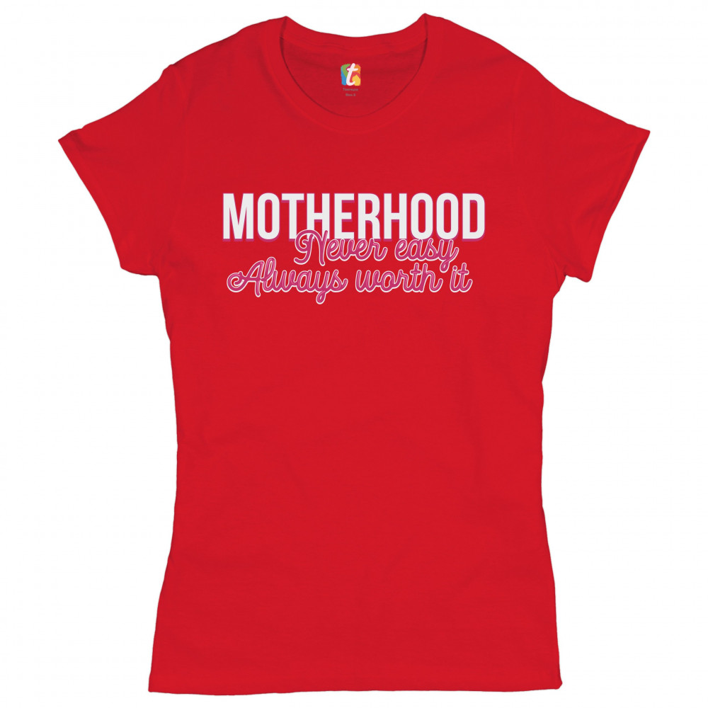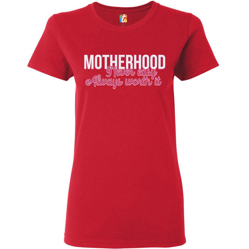 MOTHERHOOD NEVER EASY ALWAYS WORTH IT t-shirt mother's day mom women's tee red
