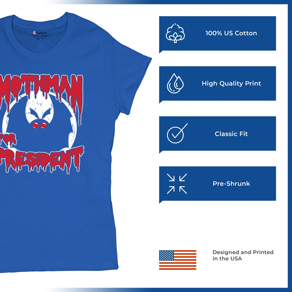 Get the "Mothman for President" shirt, blending political satire with cryptid humor. Perfect for fans of Mothman and political comedy. Durable and comfy!