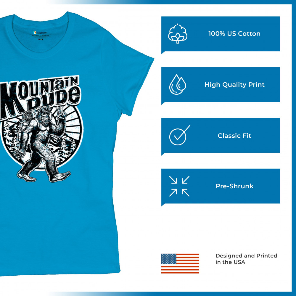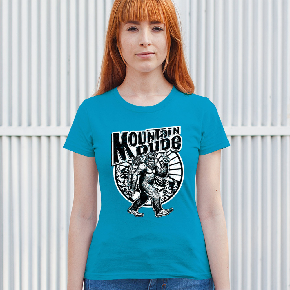 Celebrate outdoor adventures with the "Mountain Dude" design, featuring Sasquatch and mountain scenery. Perfect for hikers, campers, and Bigfoot fans.