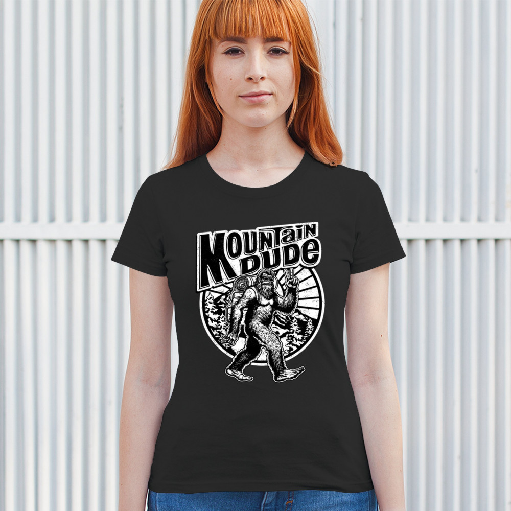 Celebrate outdoor adventures with the "Mountain Dude" design, featuring Sasquatch and mountain scenery. Perfect for hikers, campers, and Bigfoot fans.
