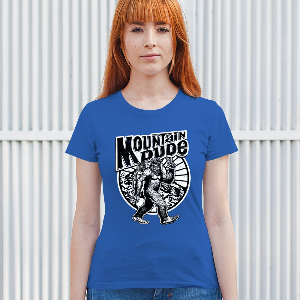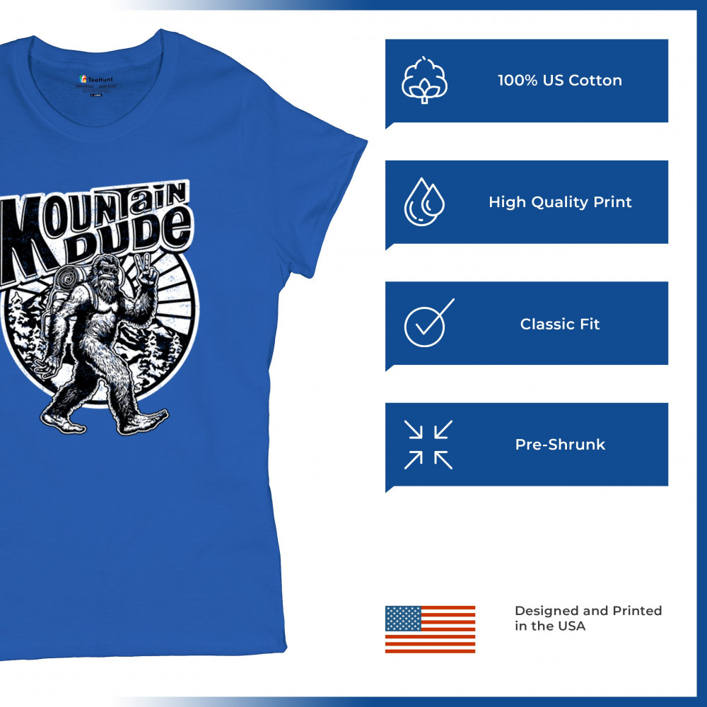 Celebrate outdoor adventures with the "Mountain Dude" design, featuring Sasquatch and mountain scenery. Perfect for hikers, campers, and Bigfoot fans.