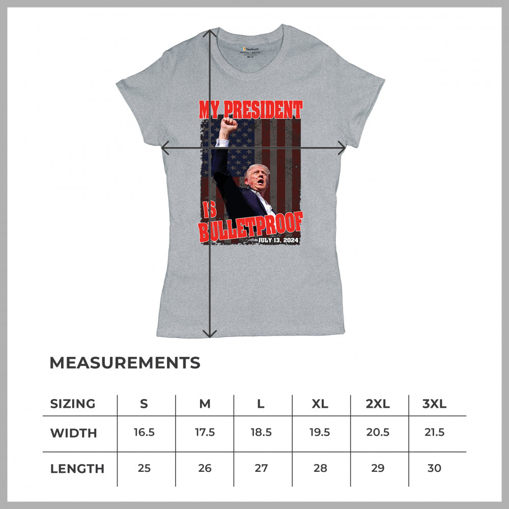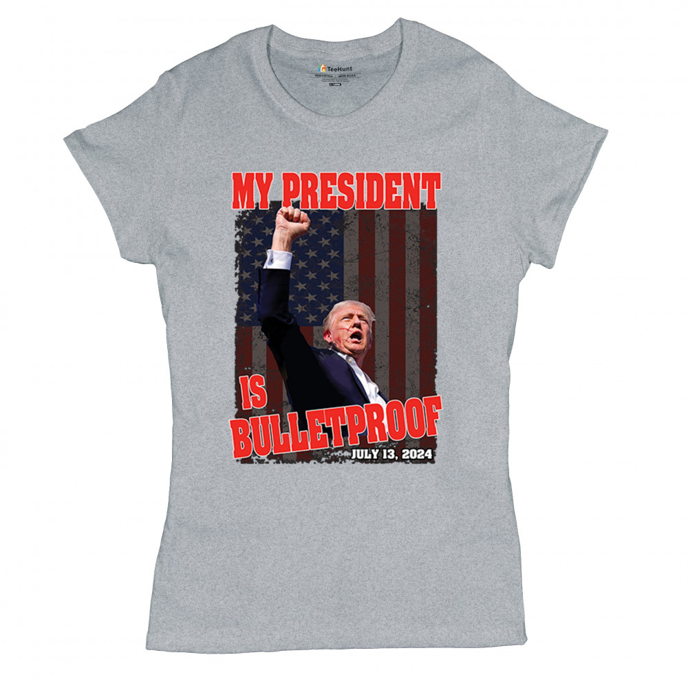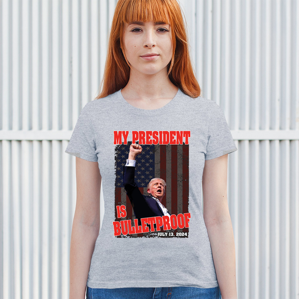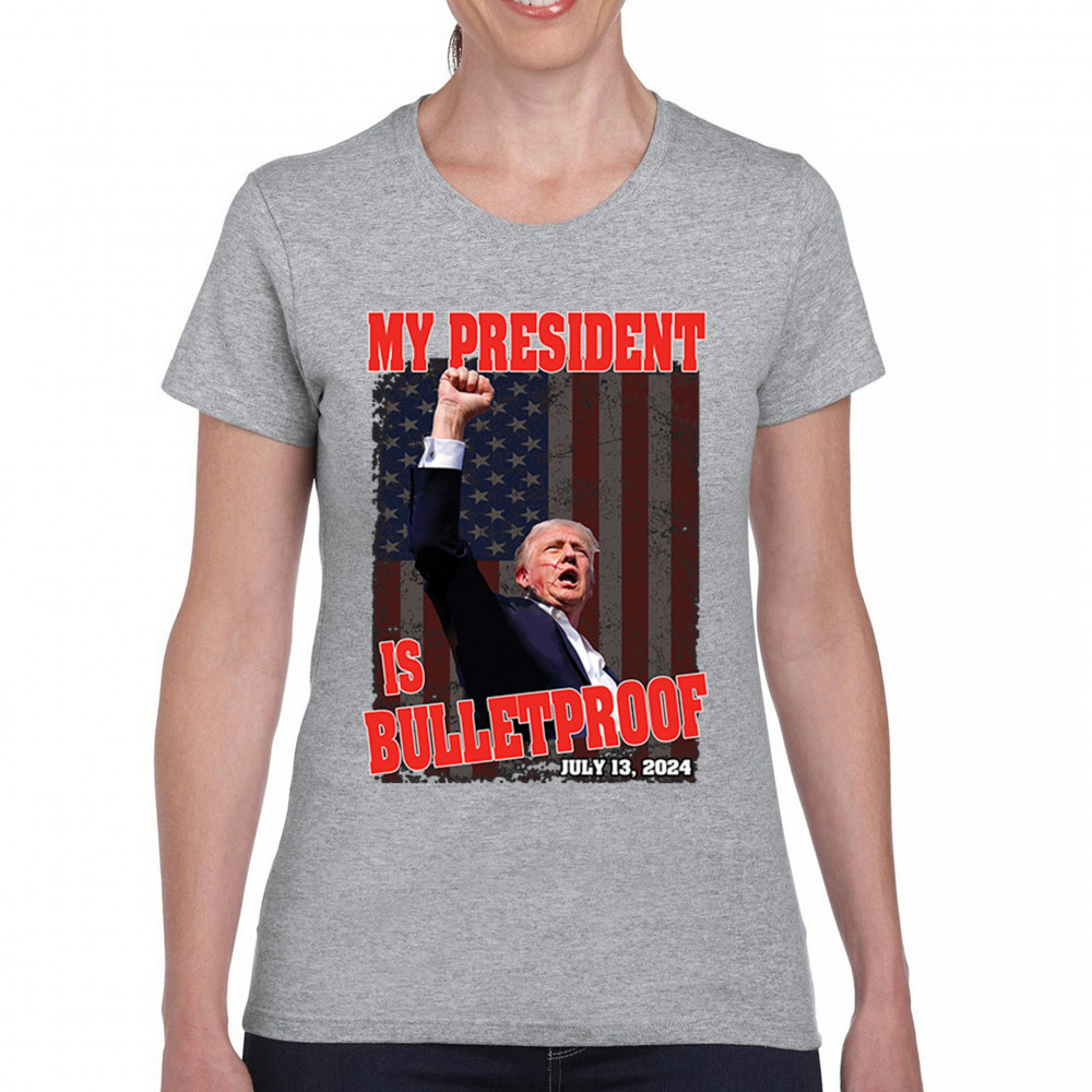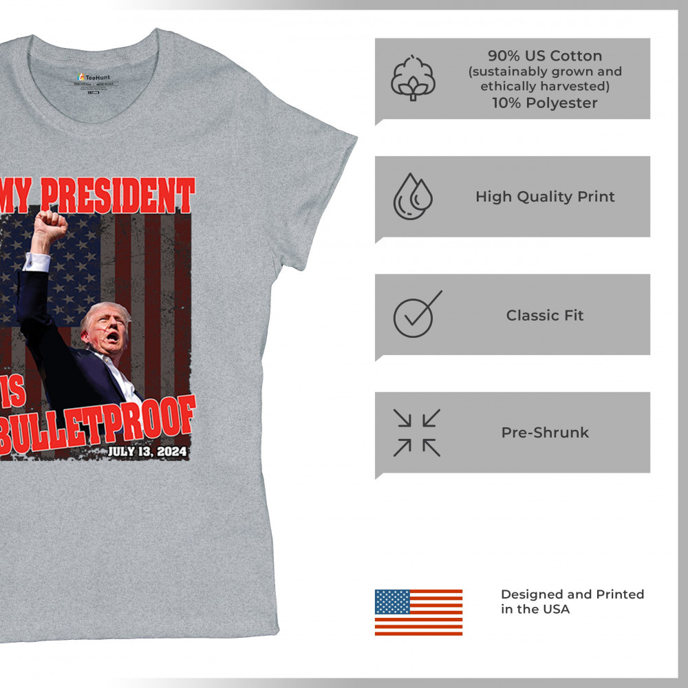 Support Trump with our "My President is Bulletproof" design, perfect for rallies and everyday wear. Show your patriotic pride and conservative values.