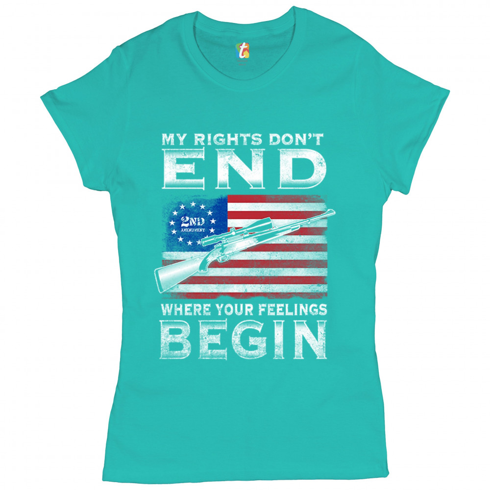 MY RIGHTS DON'T END WHERE YOUR FEELINGS BEGIN t-shirt 2nd amendment women's tee light blue