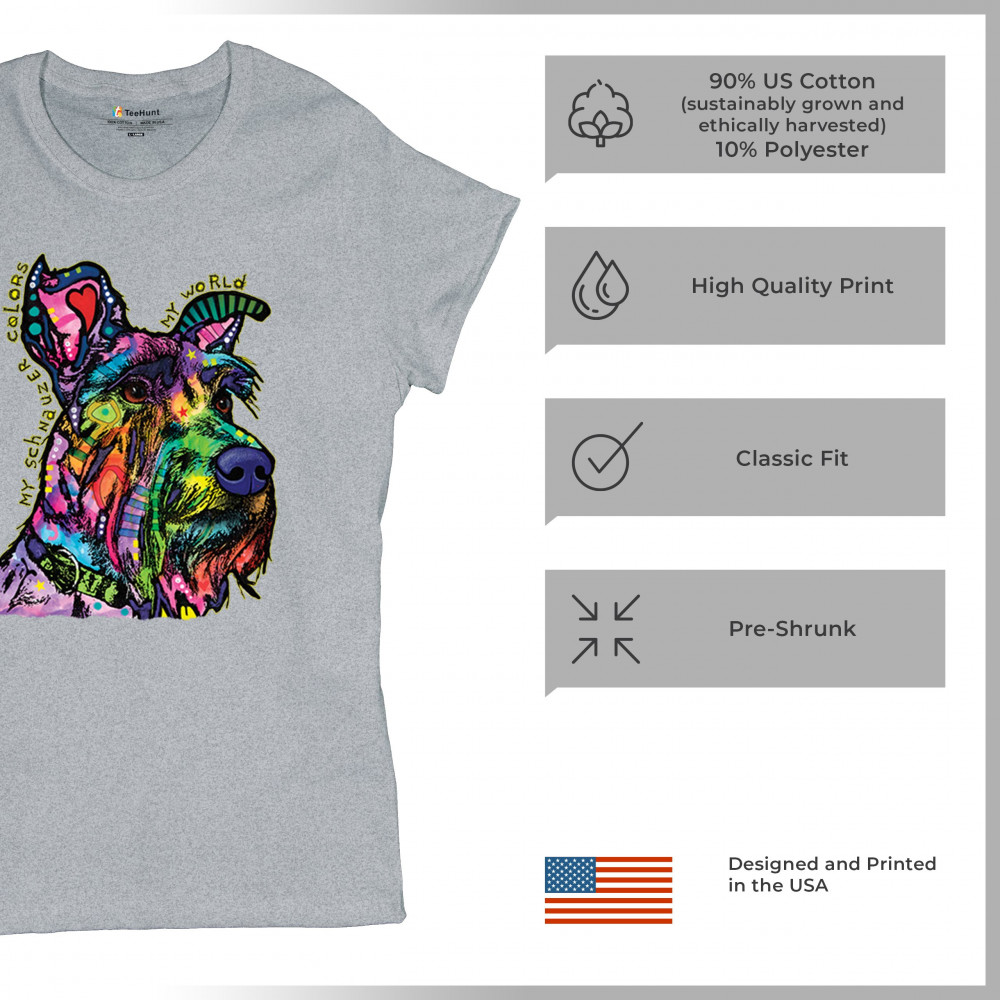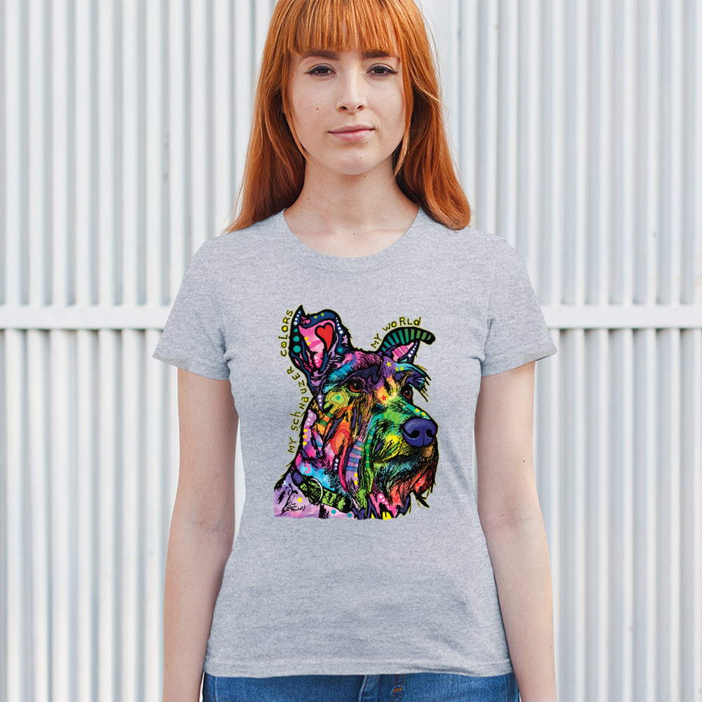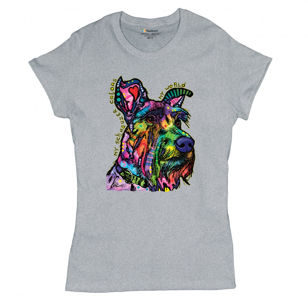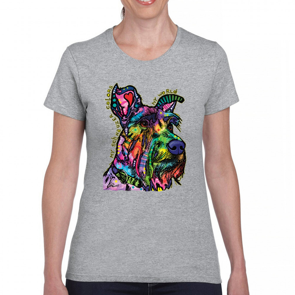 MY SCHNAUZER COLORS MY WORLD t-shirt dean russo pet dog mom women's tee gray