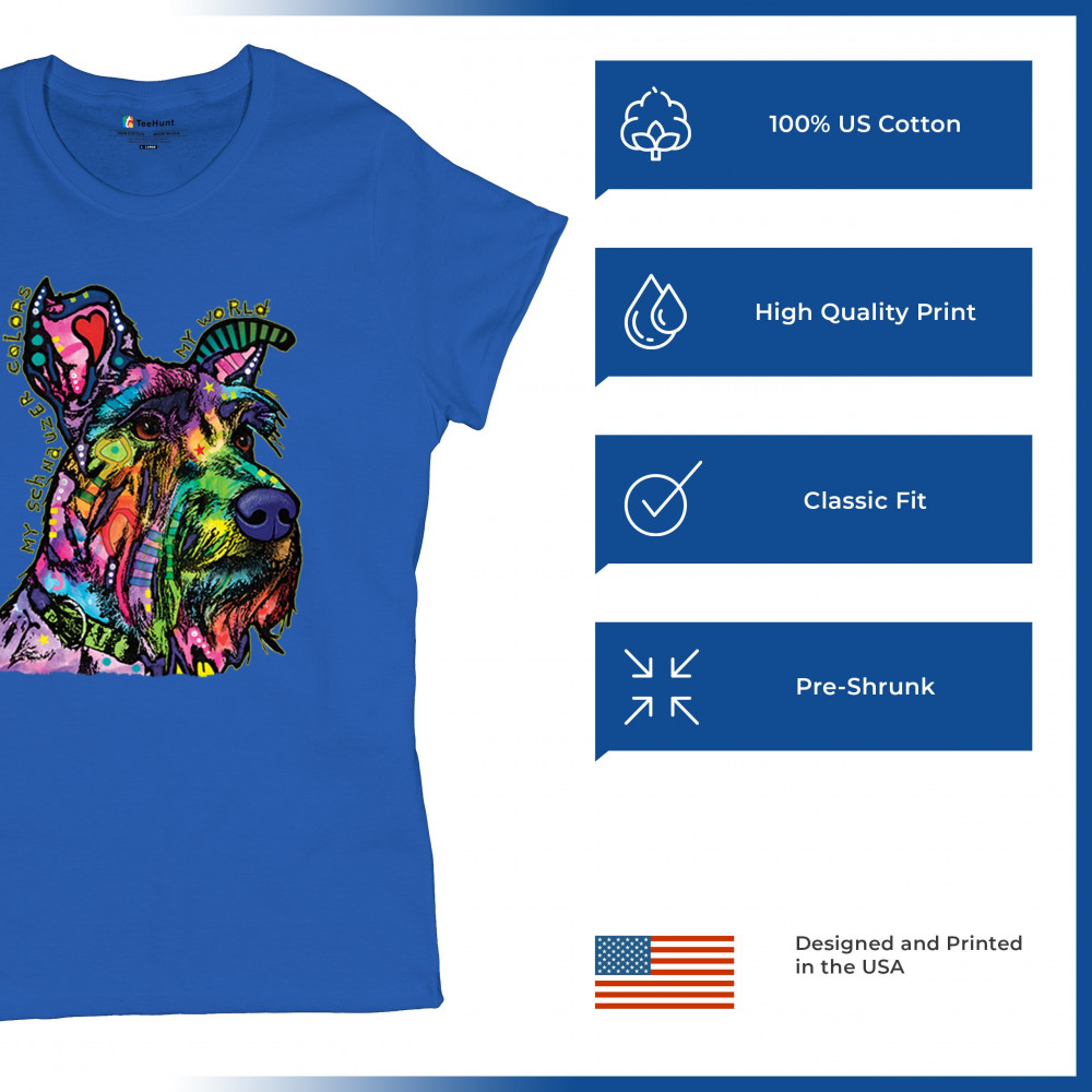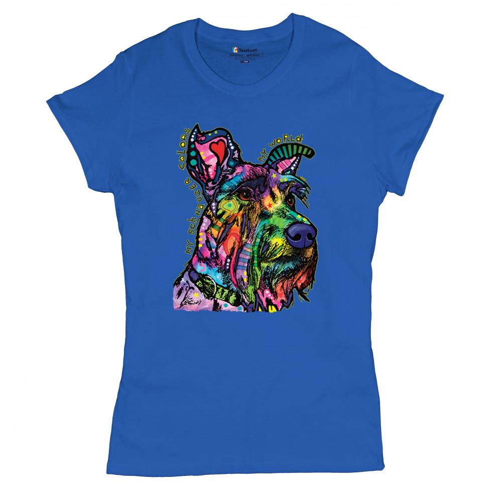 MY SCHNAUZER COLORS MY WORLD t-shirt dean russo pet dog mom women's tee royal blue