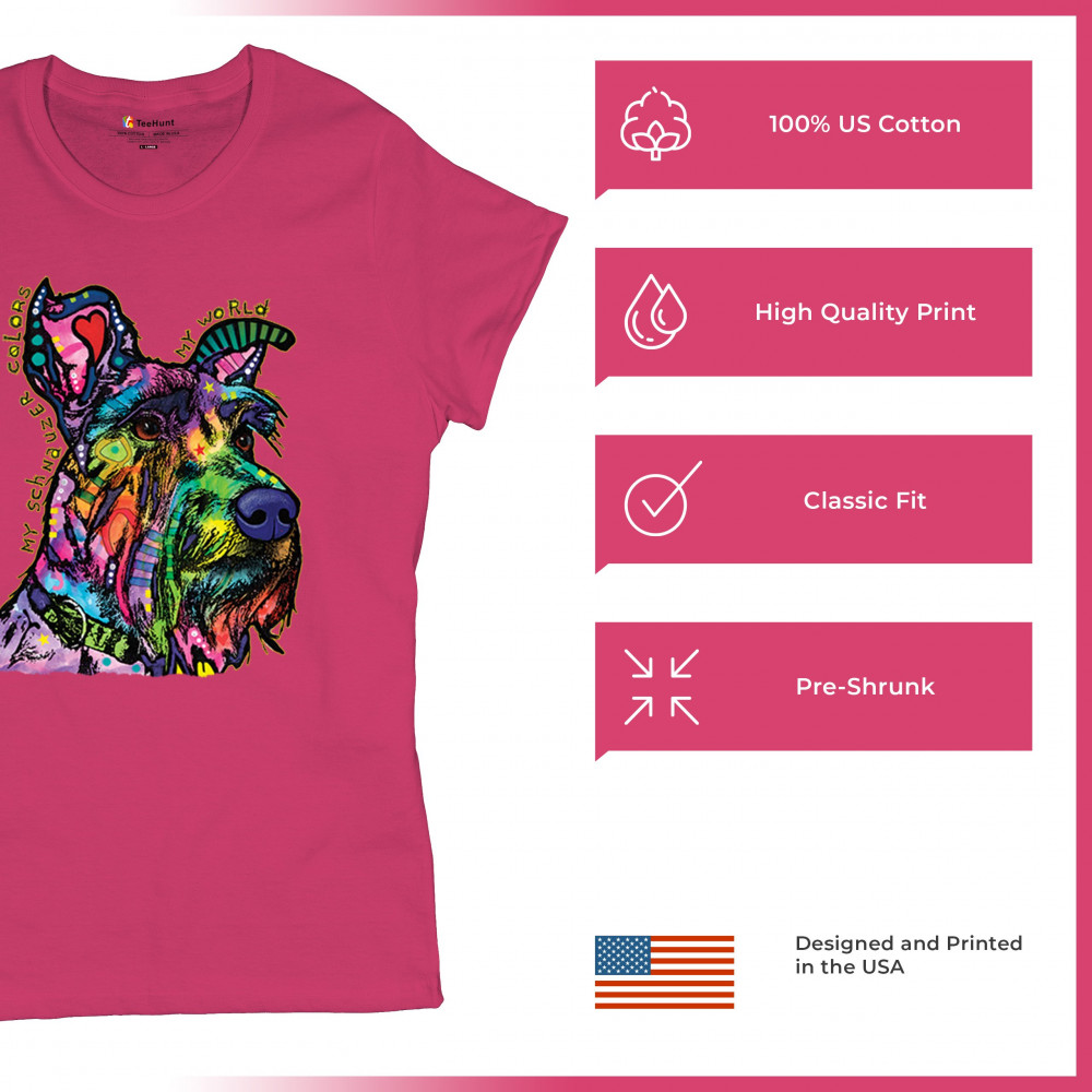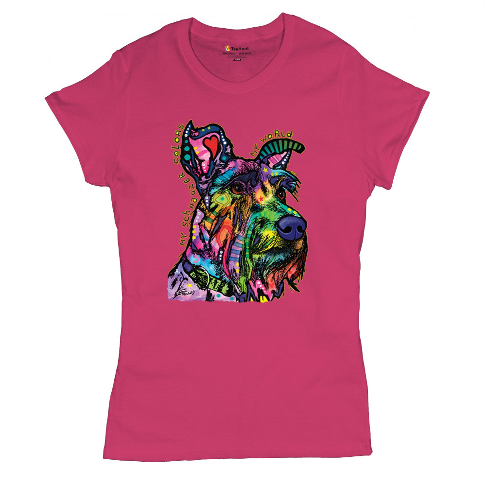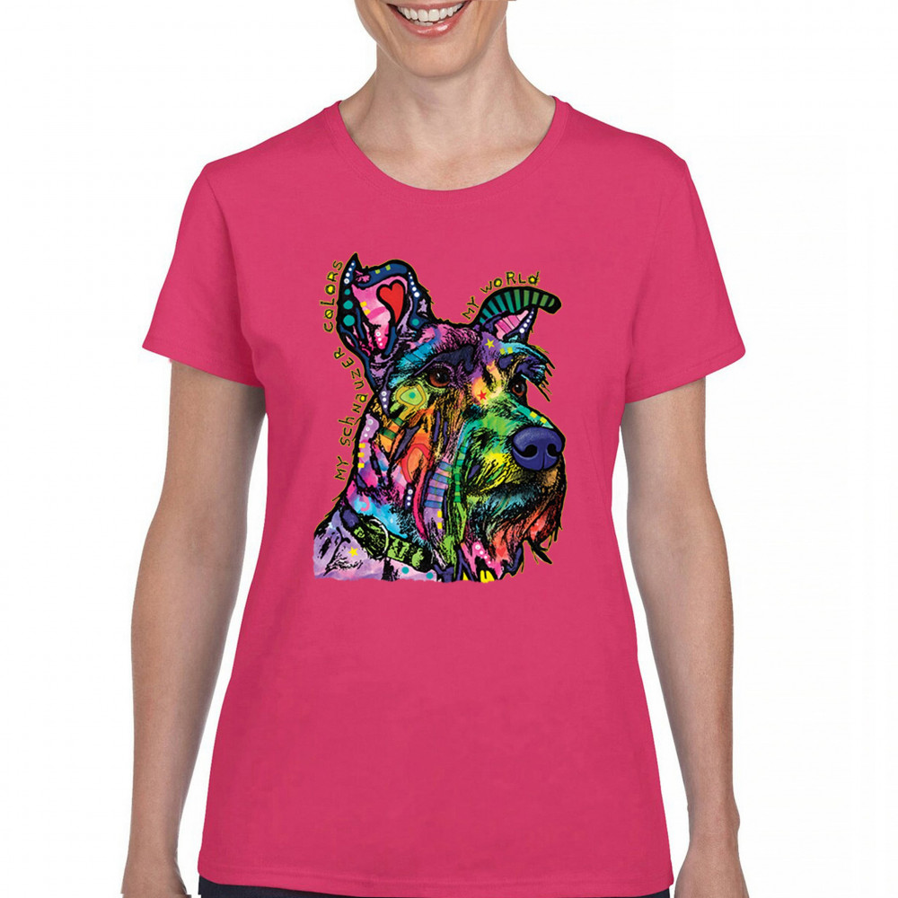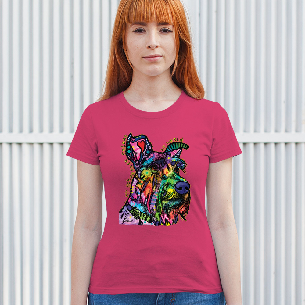 MY SCHNAUZER COLORS MY WORLD t-shirt dean russo pet dog mom women's tee pink