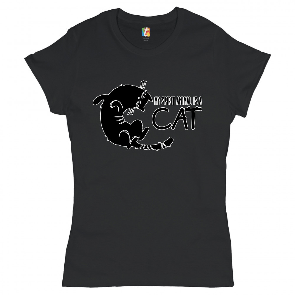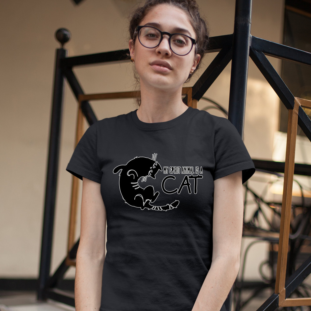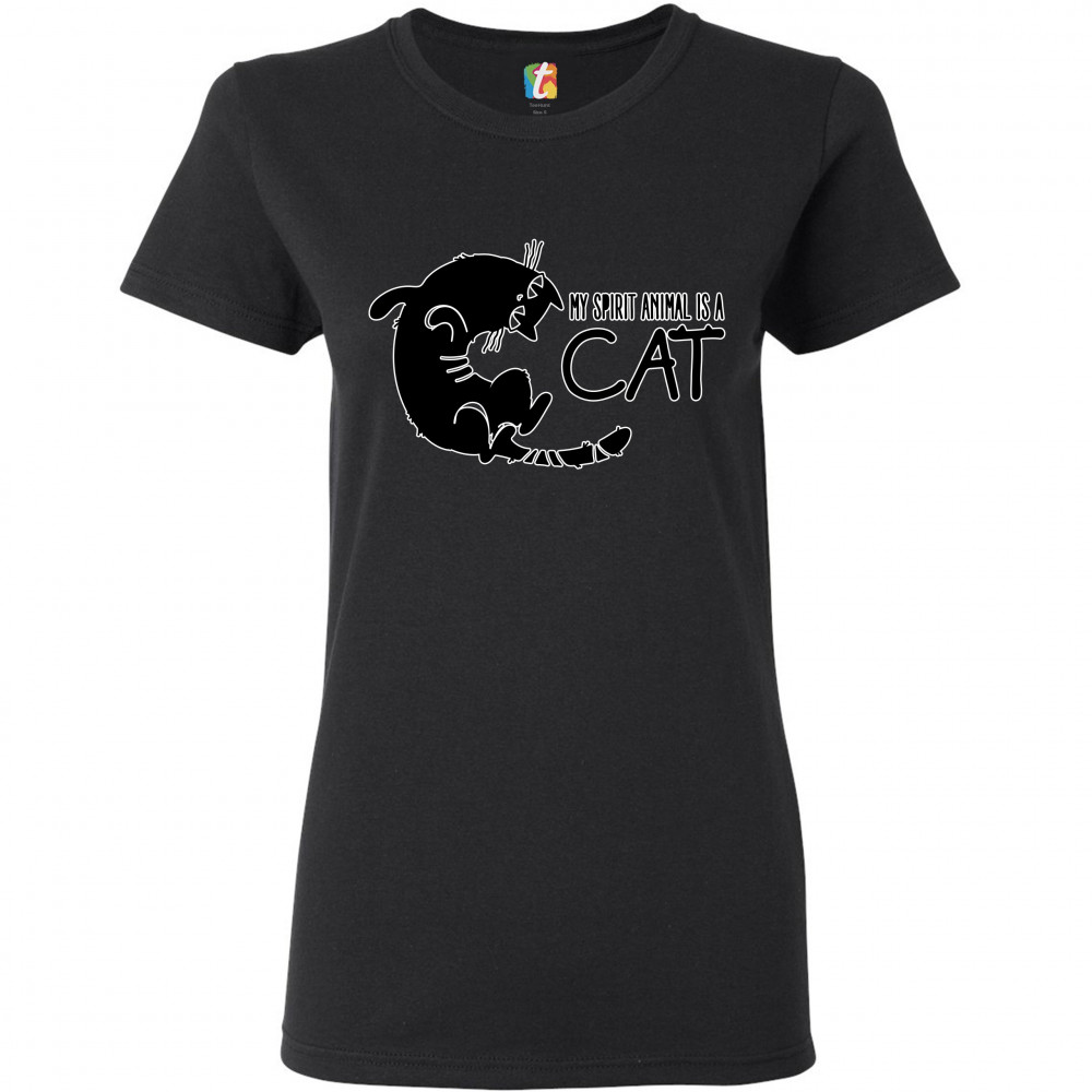 MY SPIRIT ANIMAL IS A CAT t-shirt cute kitty funny kitten women's tee black