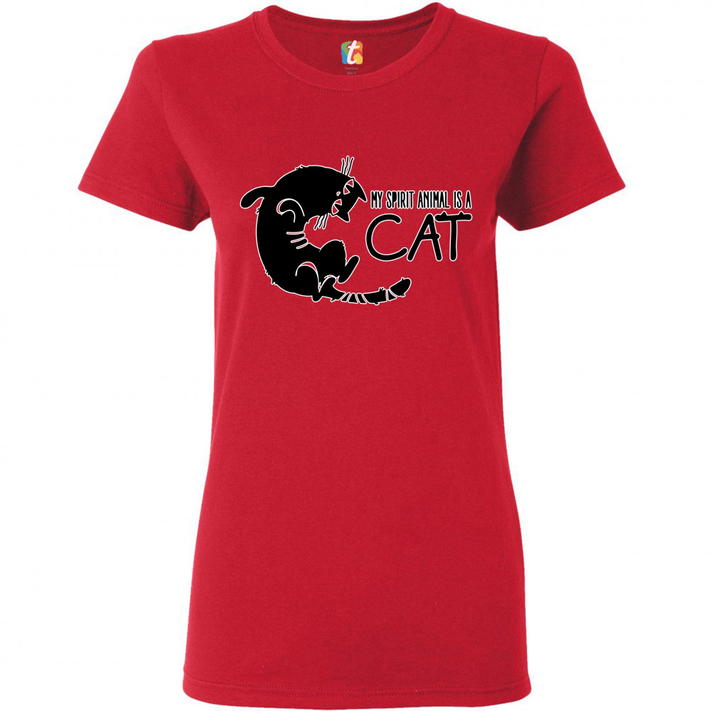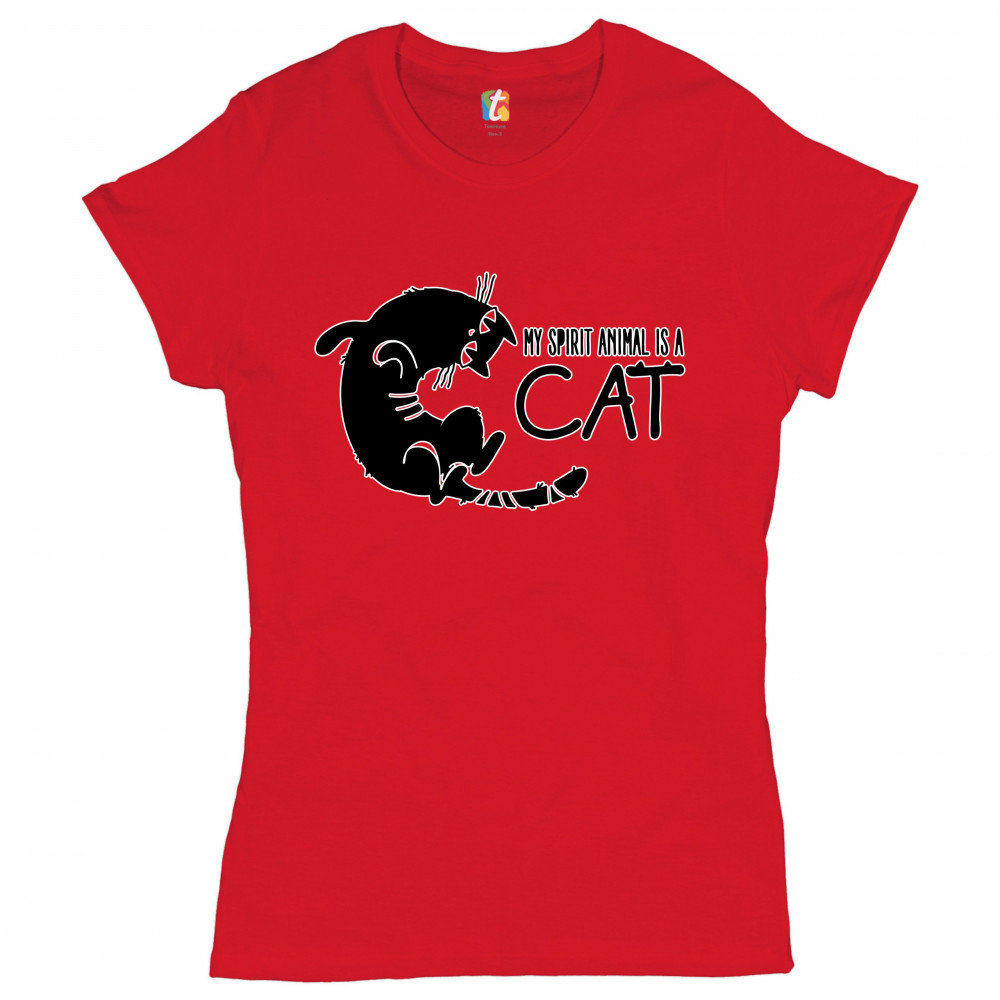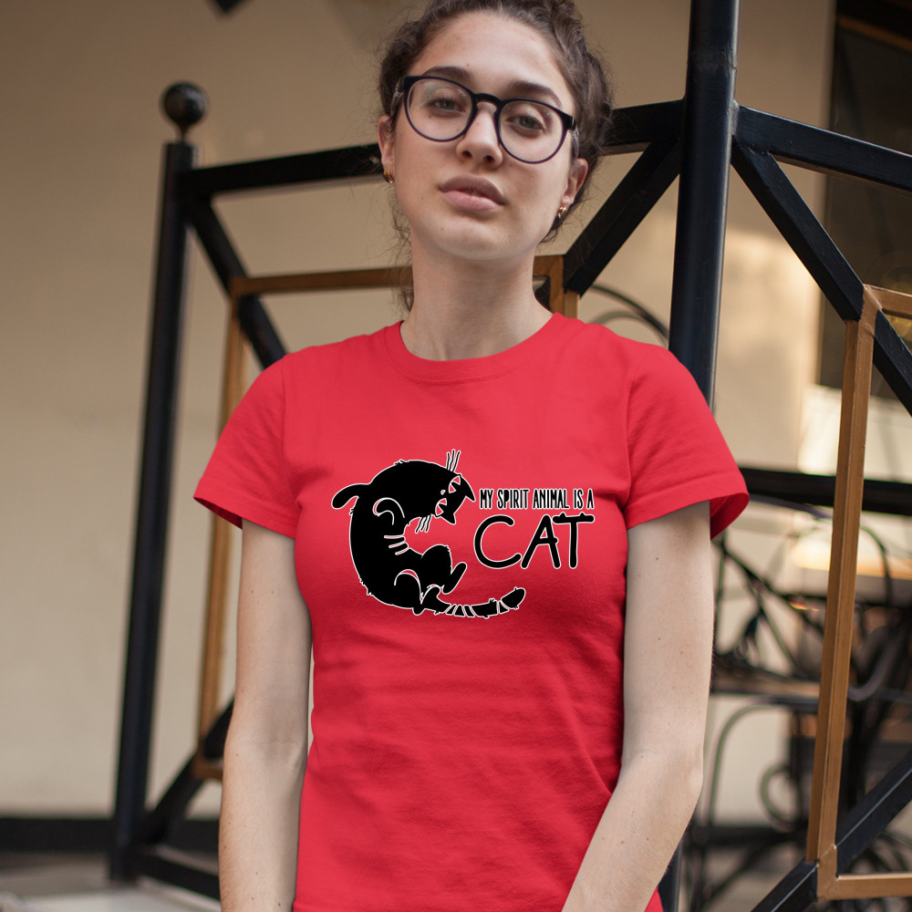 MY SPIRIT ANIMAL IS A CAT t-shirt cute kitty funny kitten women's tee red