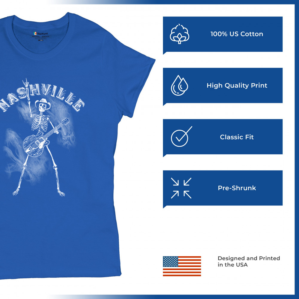 Bold skeleton cowboy design with Nashville grit and country rock vibes. Perfect for fans of music, guitars, and rebel southern style.