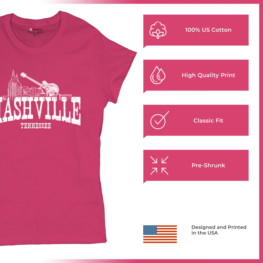 Vintage Nashville skyline and guitar design perfect for music fans, tourists, and proud Tennesseans. Ideal for concerts and city adventures.