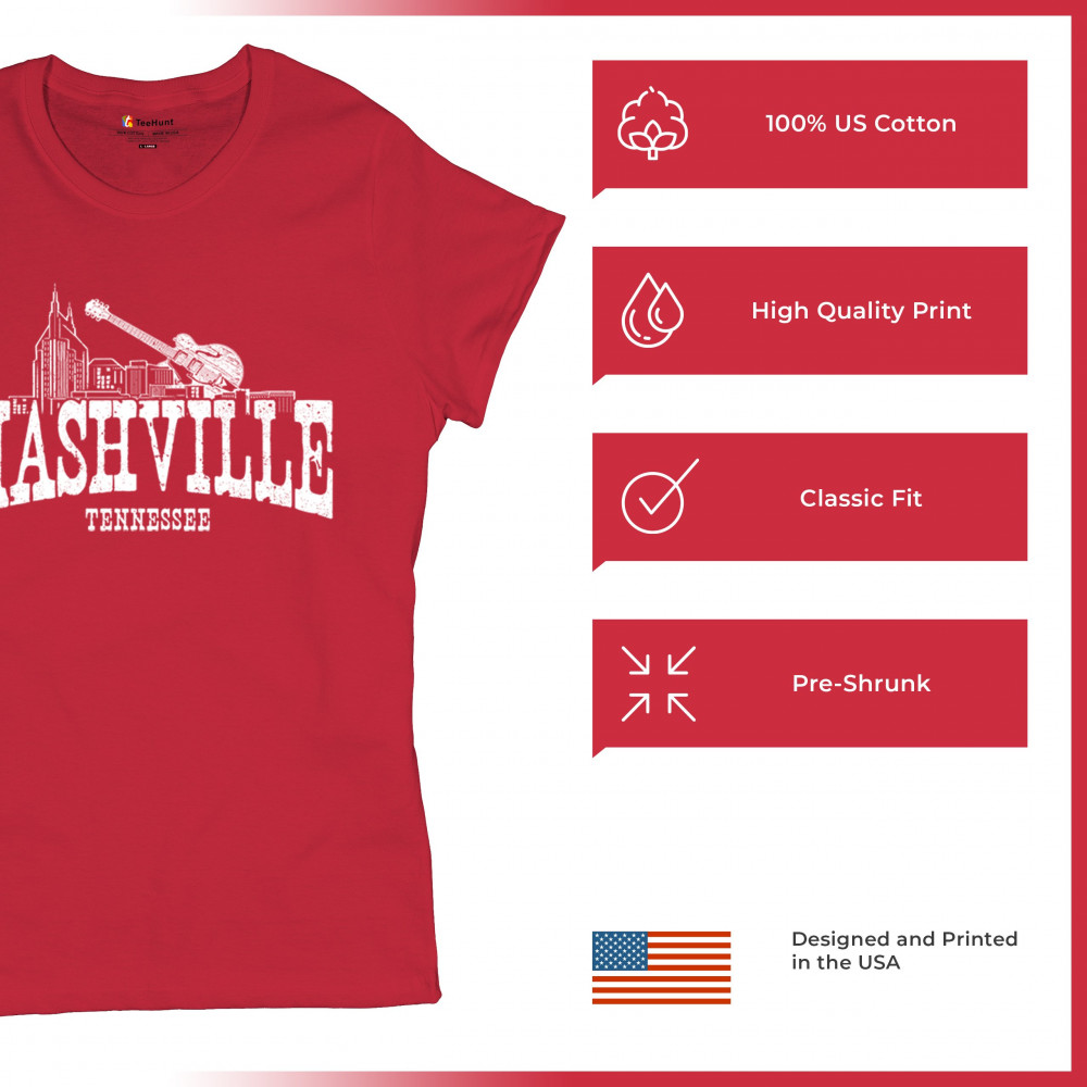 Vintage Nashville skyline and guitar design perfect for music fans, tourists, and proud Tennesseans. Ideal for concerts and city adventures.