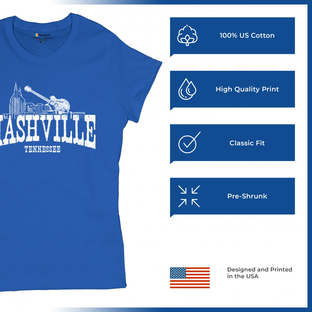 Celebrate the rhythm of Music City with this Nashville design featuring a detailed skyline and classic guitar illustration. Whether you're exploring downtown Tennessee, heading to a concert, or repping southern pride on the road, this vintage-inspired Nashville graphic brings iconic charm to any casual outing.