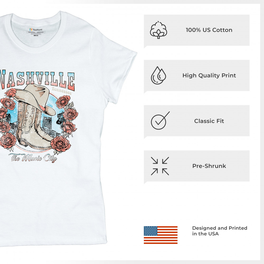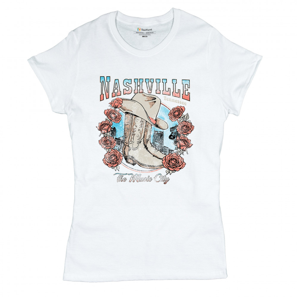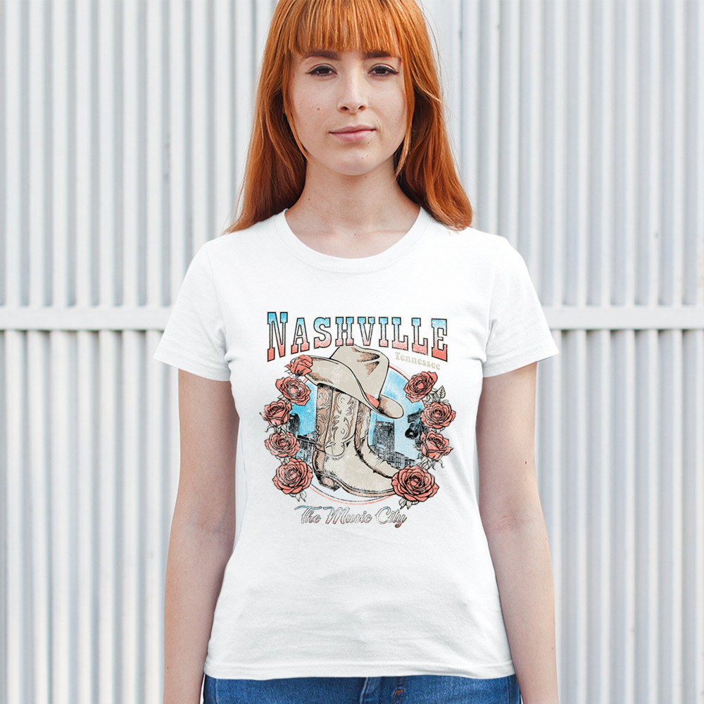 Show Nashville pride with a vintage cowgirl boots and hat design that blends country, western style, floral beauty, and southern grit.