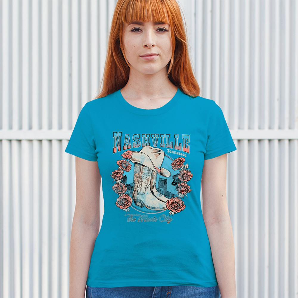 Celebrate Nashville’s country spirit with this vintage cowgirl boots and hat design, framed by beautiful roses and music city vibes. Perfect for fans of western fashion, honkytonk culture, and Americana grit. Whether you’re a southern belle, frontier chic, or a music lover, embrace the rustic charm and floral beauty of Tennessee’s proud heart.