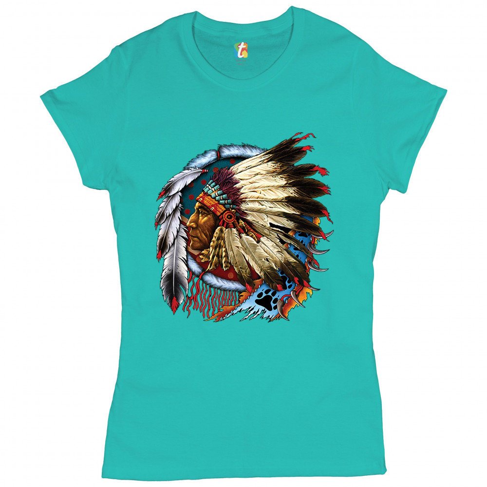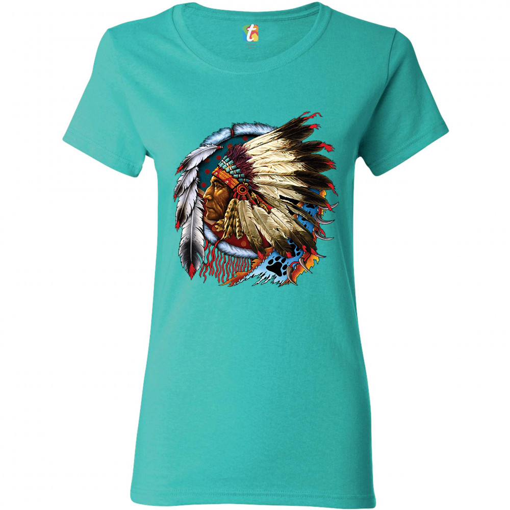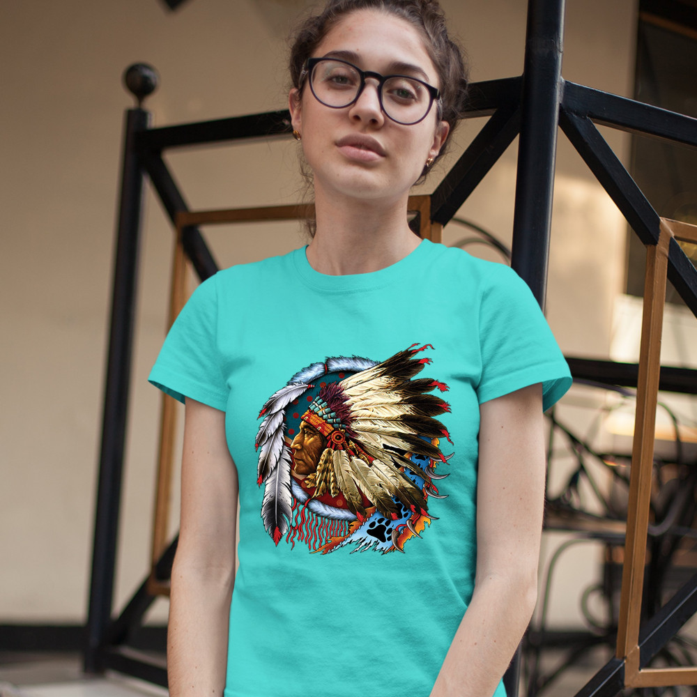 NATIVE AMERICAN CHIEF t-shirt war bonnet dreamcatcher indigenous women's tee light blue