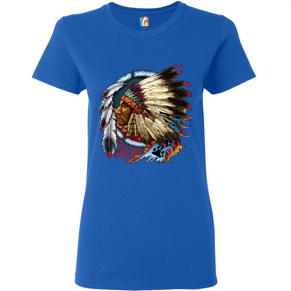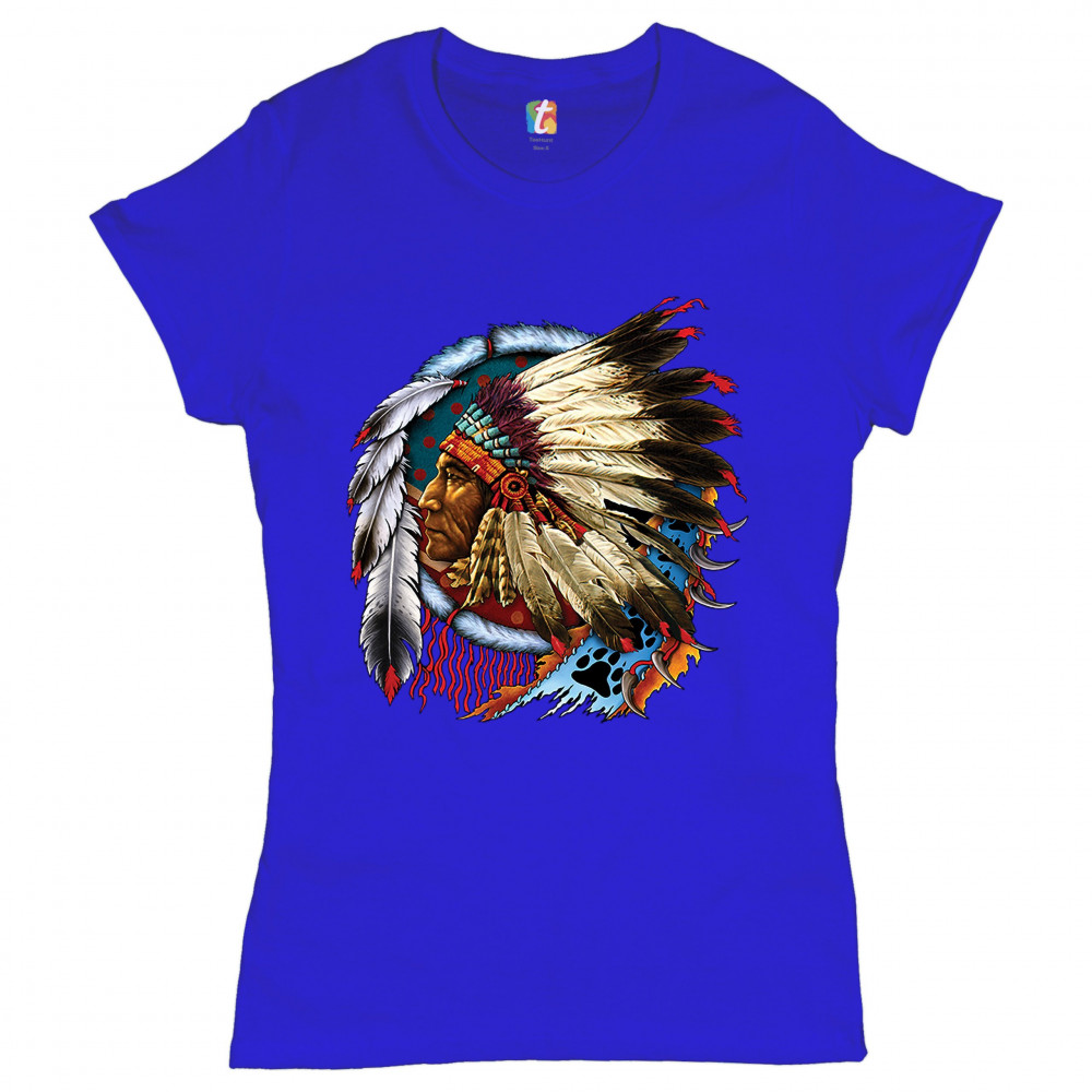 NATIVE AMERICAN CHIEF t-shirt war bonnet dreamcatcher indigenous women's tee royal blue