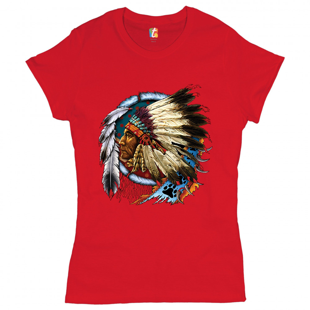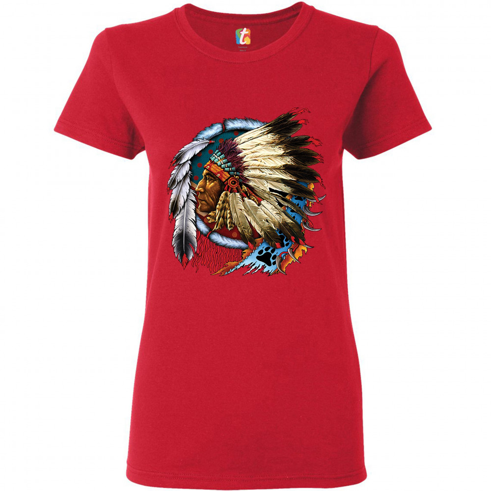 NATIVE AMERICAN CHIEF t-shirt war bonnet dreamcatcher indigenous women's tee red
