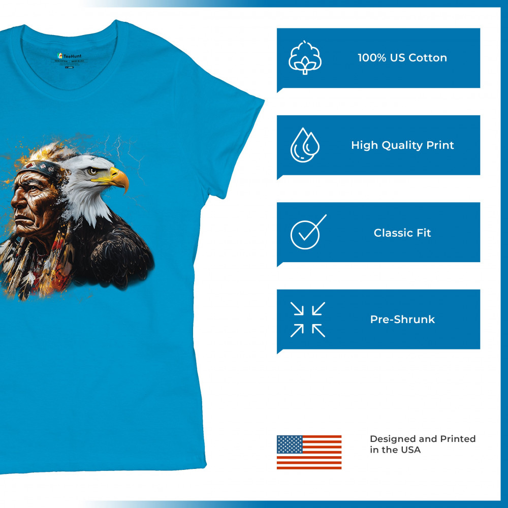 Bold tribal totem design with Native chief, eagle, lightning, and fire. A fierce blend of spirit, power, and cultural pride in one image.