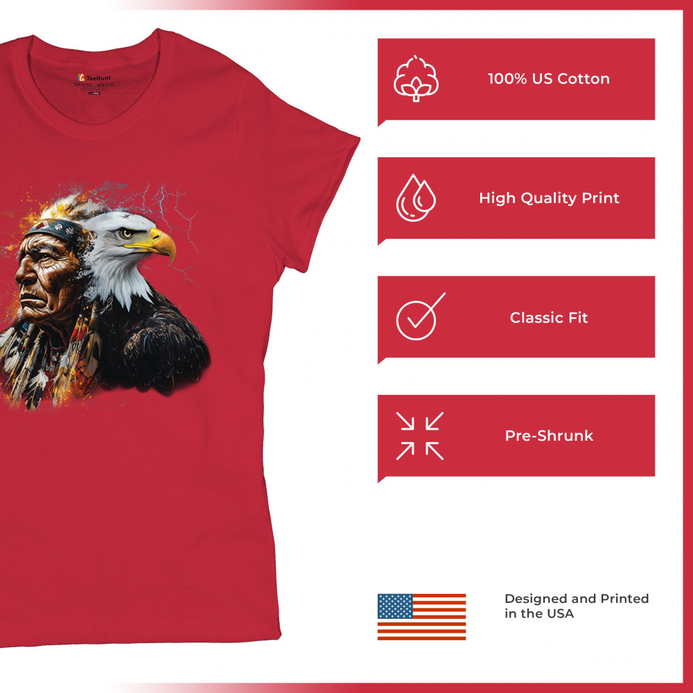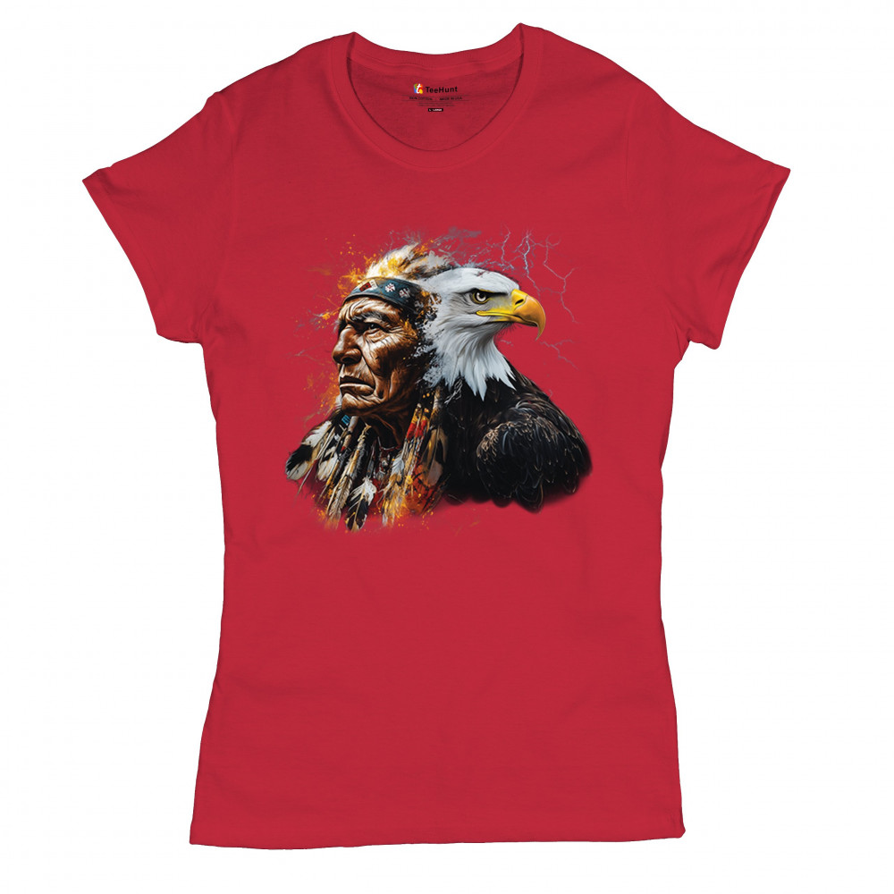 Bold tribal totem design with Native chief, eagle, lightning, and fire. A fierce blend of spirit, power, and cultural pride in one image.