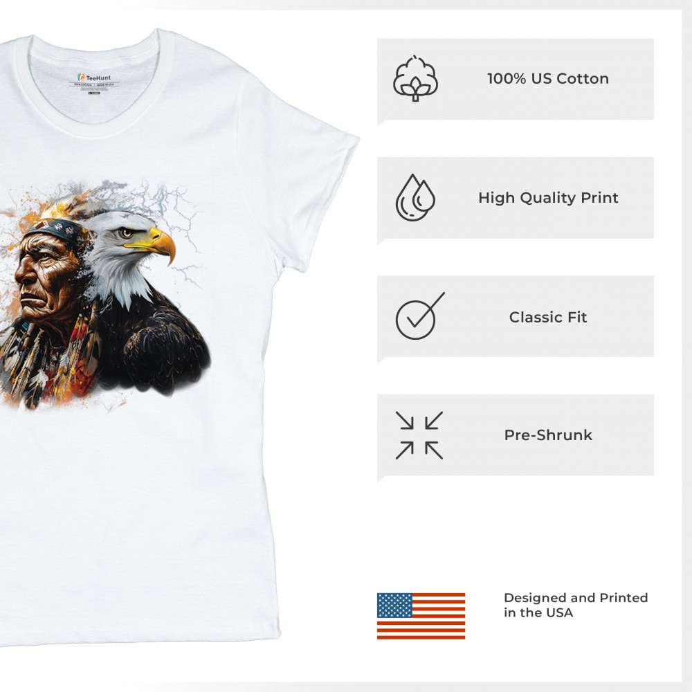 Bold tribal totem design with Native chief, eagle, lightning, and fire. A fierce blend of spirit, power, and cultural pride in one image.