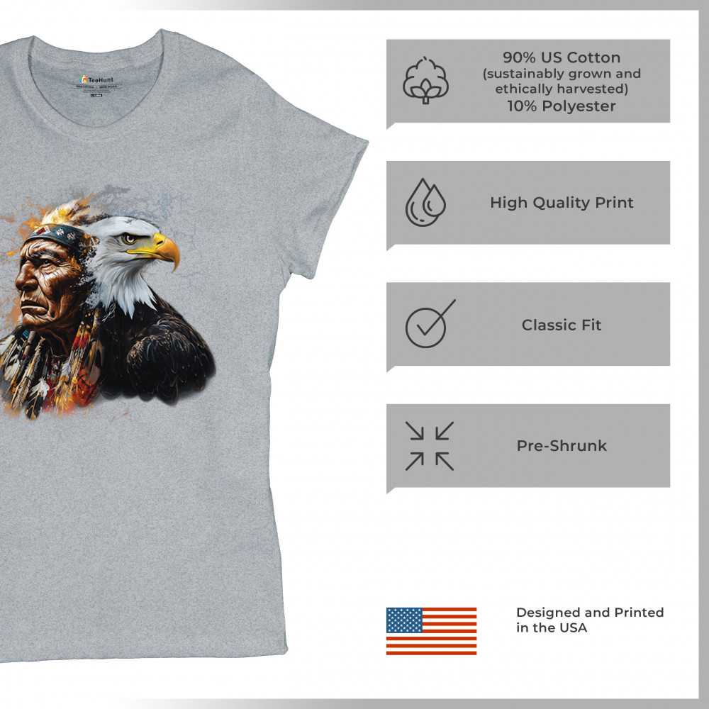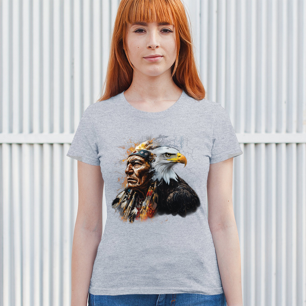 This electrifying design showcases a Native American chief with a bold bald eagle, surrounded by lightning and fire. It blends spiritual animal symbolism with cultural strength and pride. Ideal for admirers of tribal heritage, ancestral energy, and fierce visual storytelling through nature and tradition.