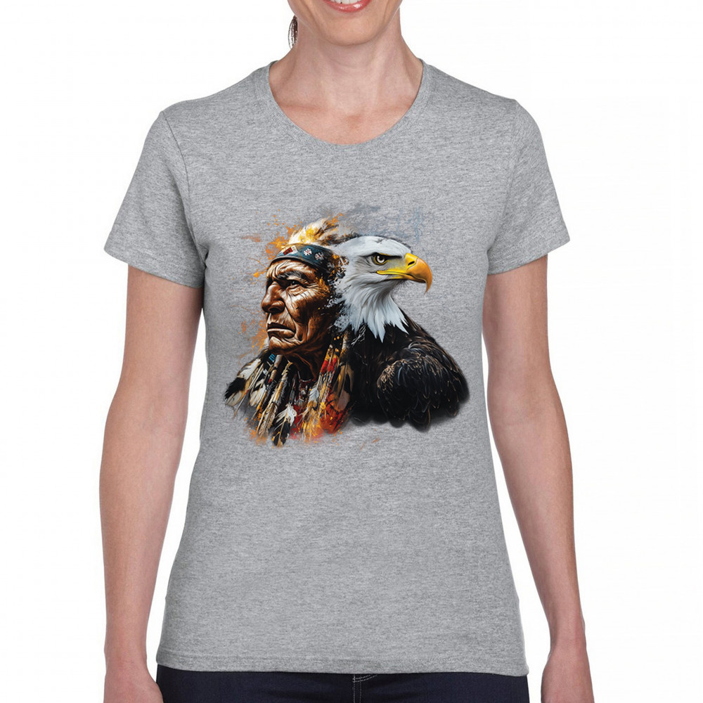 Bold tribal totem design with Native chief, eagle, lightning, and fire. A fierce blend of spirit, power, and cultural pride in one image.