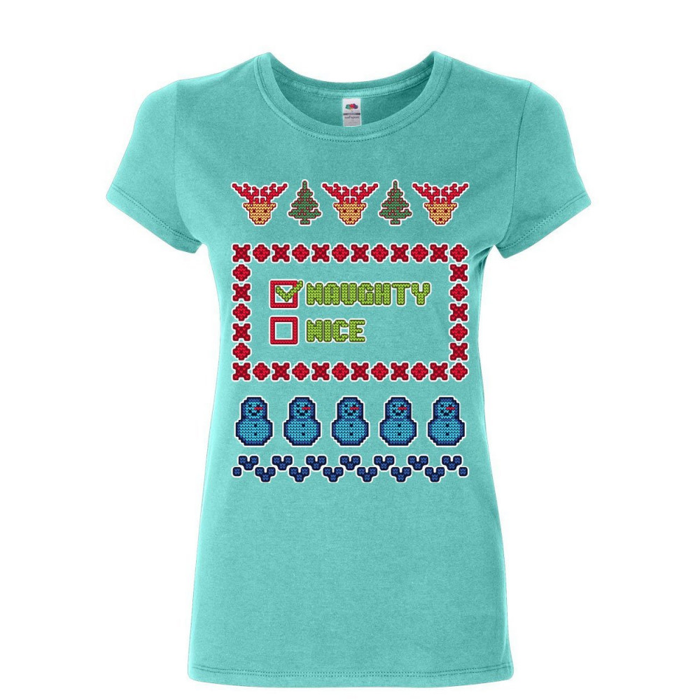 NAUGHTY OR NICE ugly sweater women's t-shirt christmas xmas holiday list shirt light blue