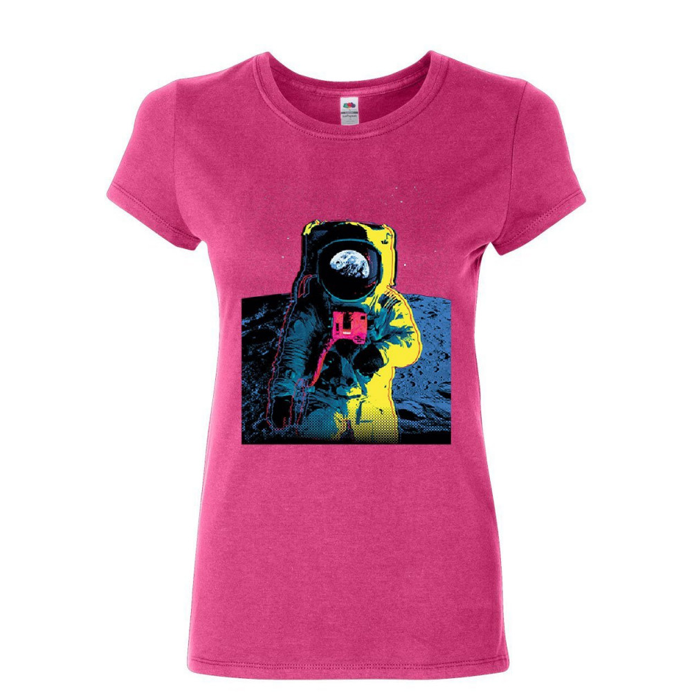 NEON ASTRONAUT women's t-shirt moon landing space travel universe earth shirt hot pink