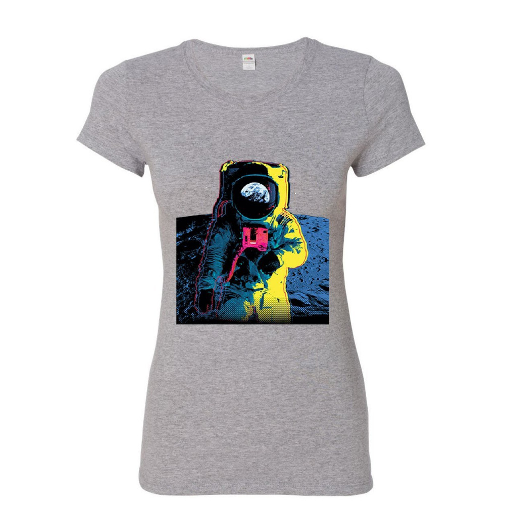 NEON ASTRONAUT women's t-shirt moon landing space travel universe earth shirt gray
