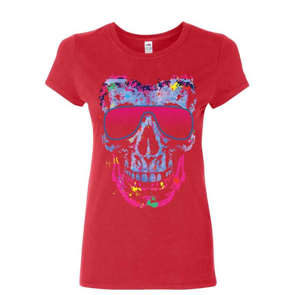 NEON SKULL SUNGLASSES women's t-shirt swag multicolor music edm rave pop shirt red