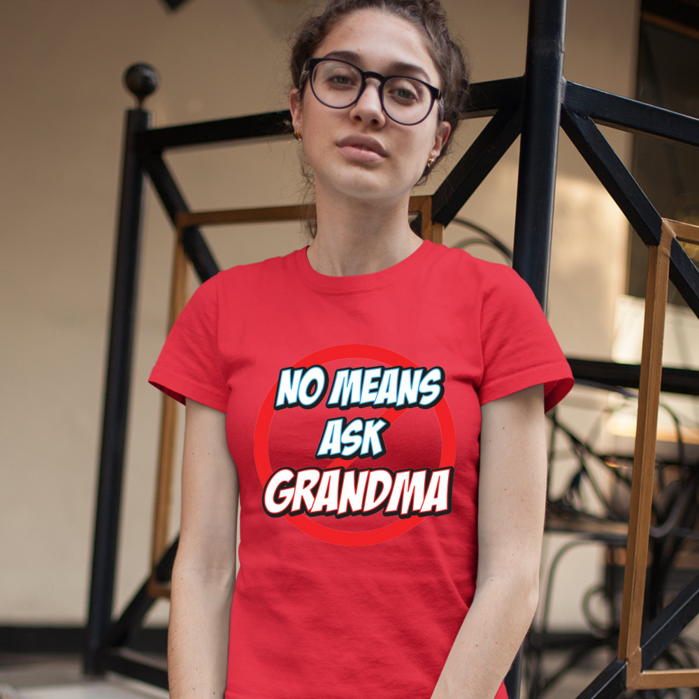 NO MEANS ASK GRANDMA t-shirt granny mother's day funny mimi nana women's tee red
