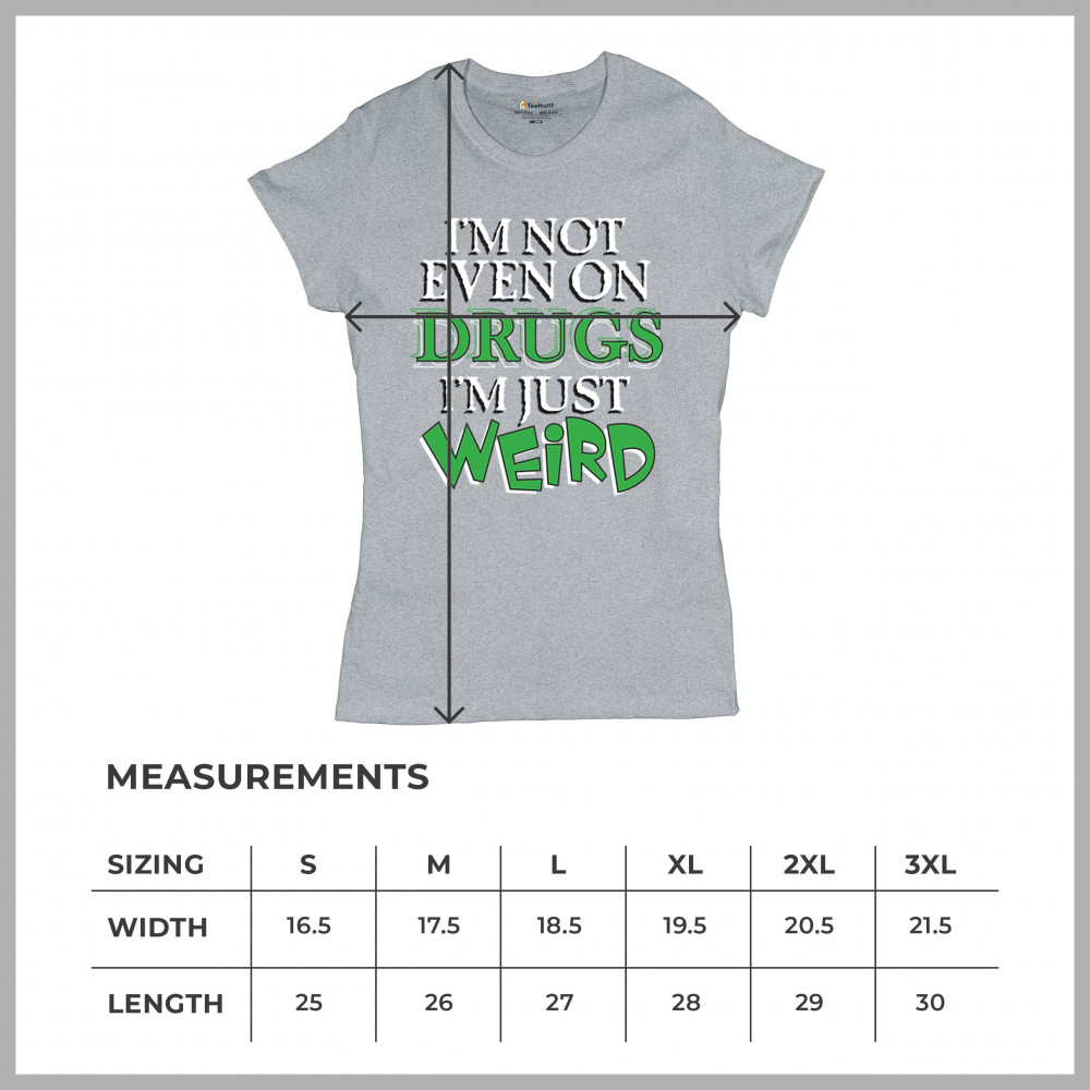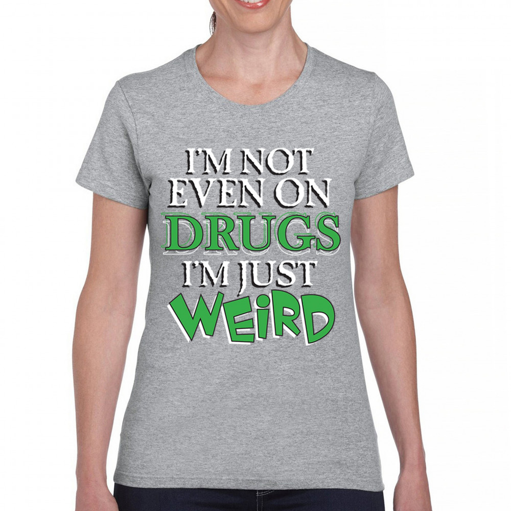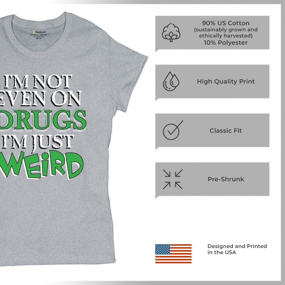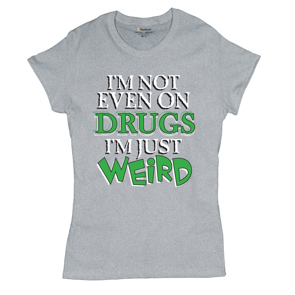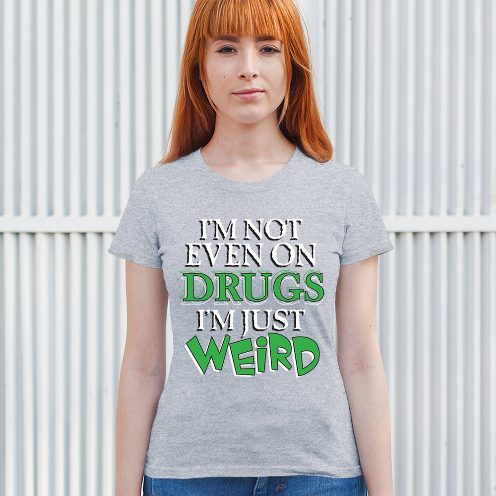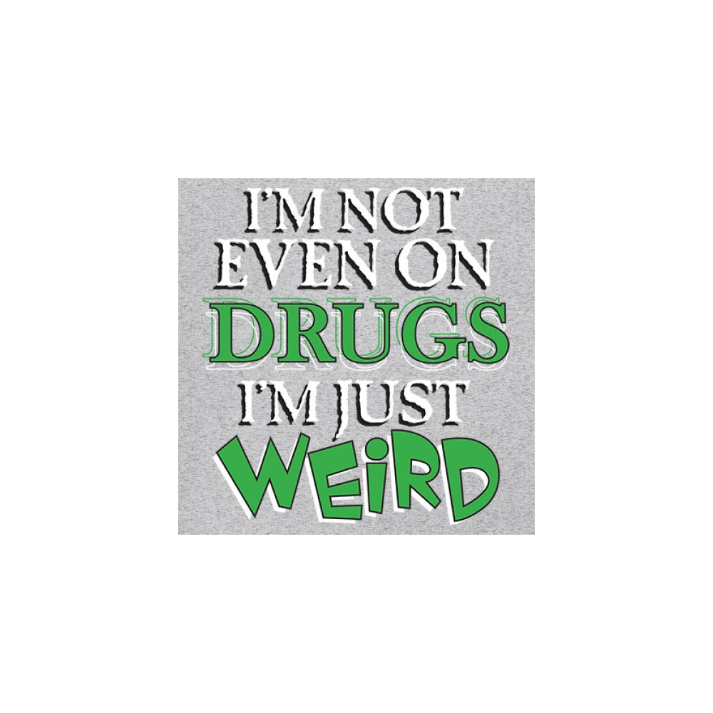 Bold weird design for introverts and quirky minds. Says “I'm not even on drugs I'm just weirdâ€â€”perfect for awkward humor and loud energy.