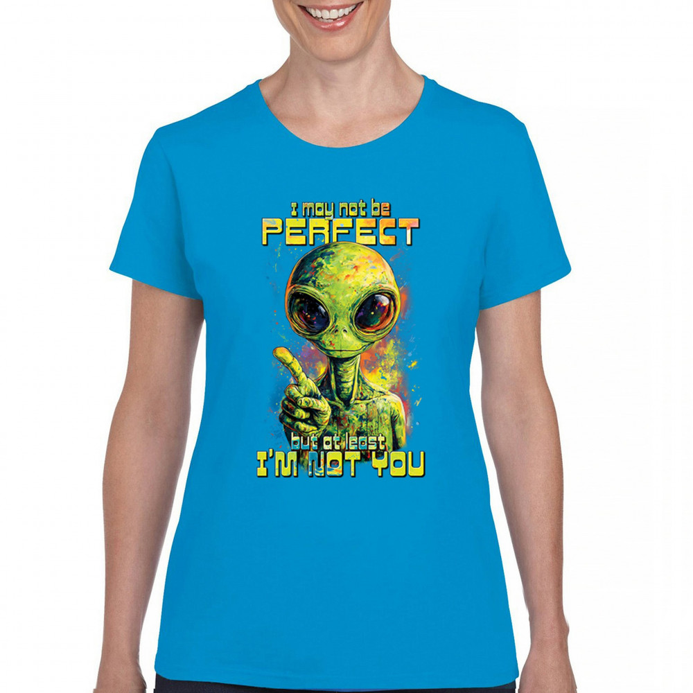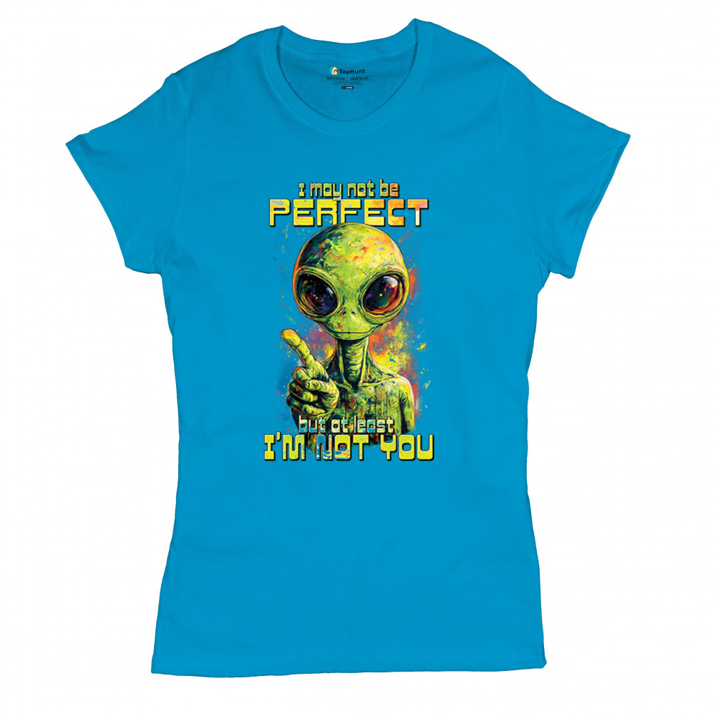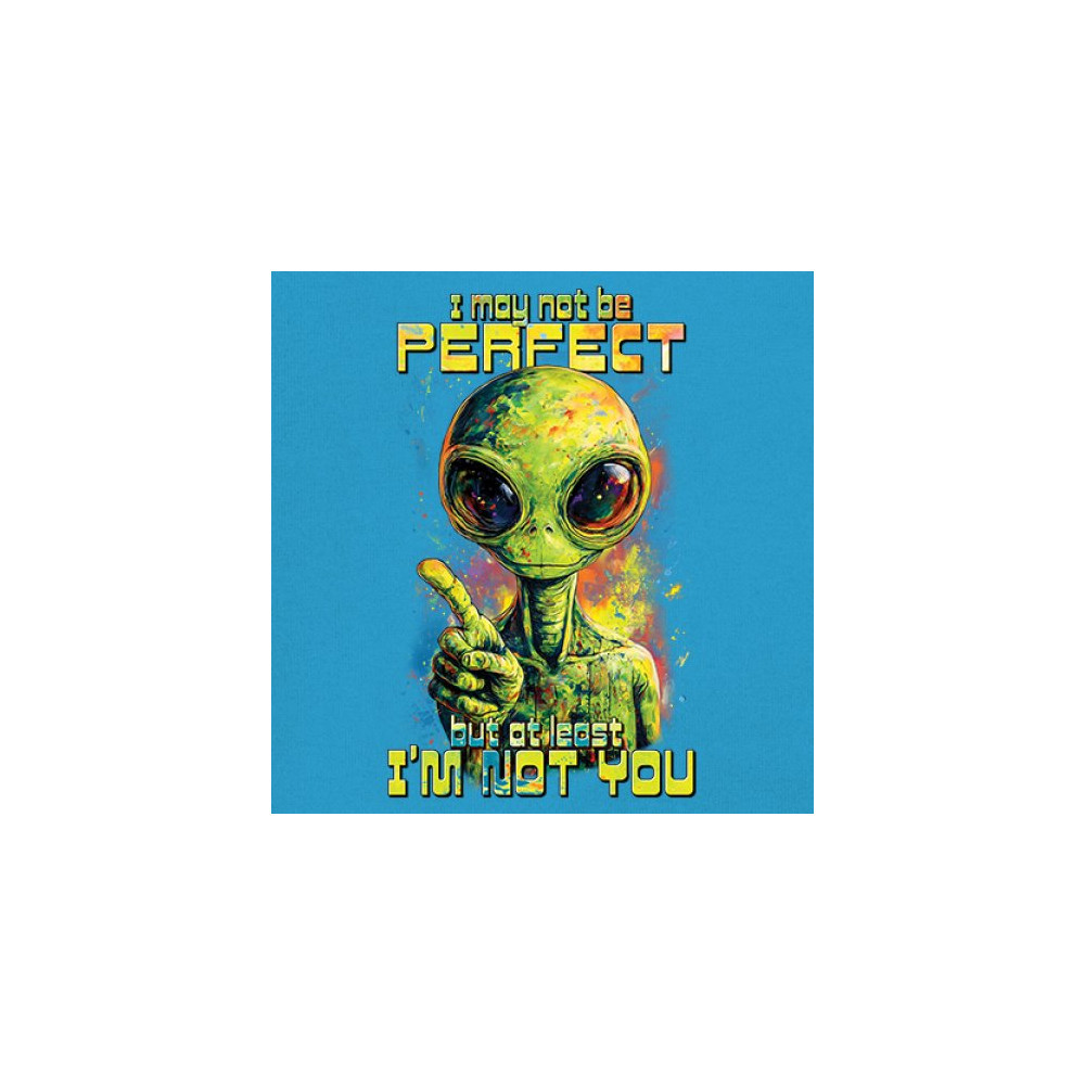 This smug alien design delivers sharp sarcastic humor with vibrant cosmic flair. Featuring a big-eyed extraterrestrial and the quote “I may not be perfect, but at least I’m not you,†it’s perfect for sci-fi fans, alien lovers, jokesters, and oddballs alike. A bold, funny statement for parties, UFO events, and festivals.