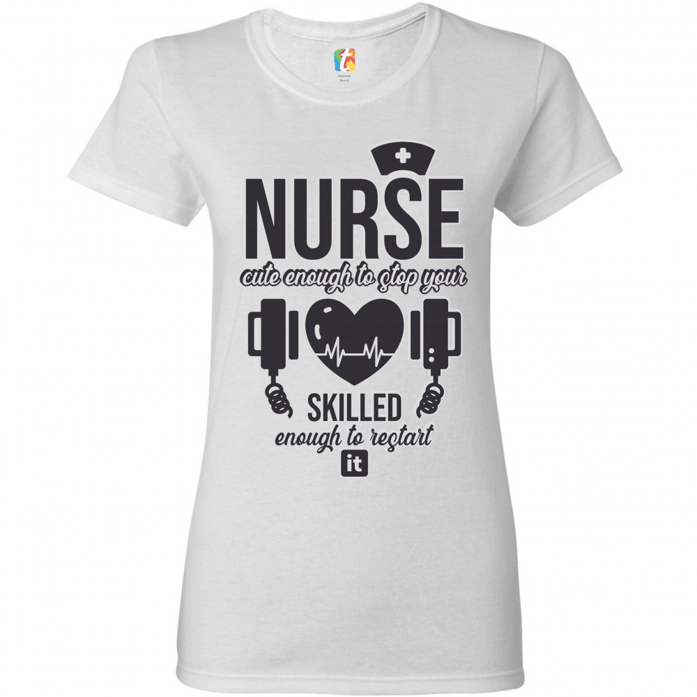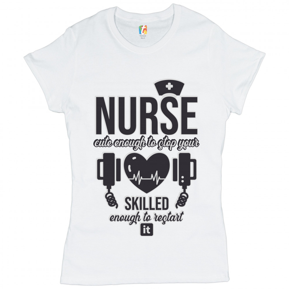 A print saying: "Nurse - Cute Enough to Stop Your Heart, Skilled Enough to Restart It". In the center of the print there is a a heart with two defibrilators to it's sides. A great choice as a gift for a registered nurse, who is busy everyday saving people