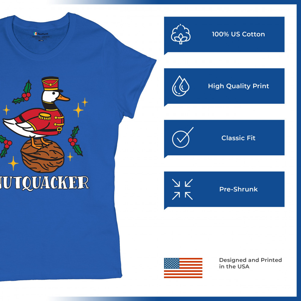 Funny Nutquacker Christmas design featuring a festive duck, holiday humor, and seasonal charm. Great for parties, gifts, and cheerful holiday style.